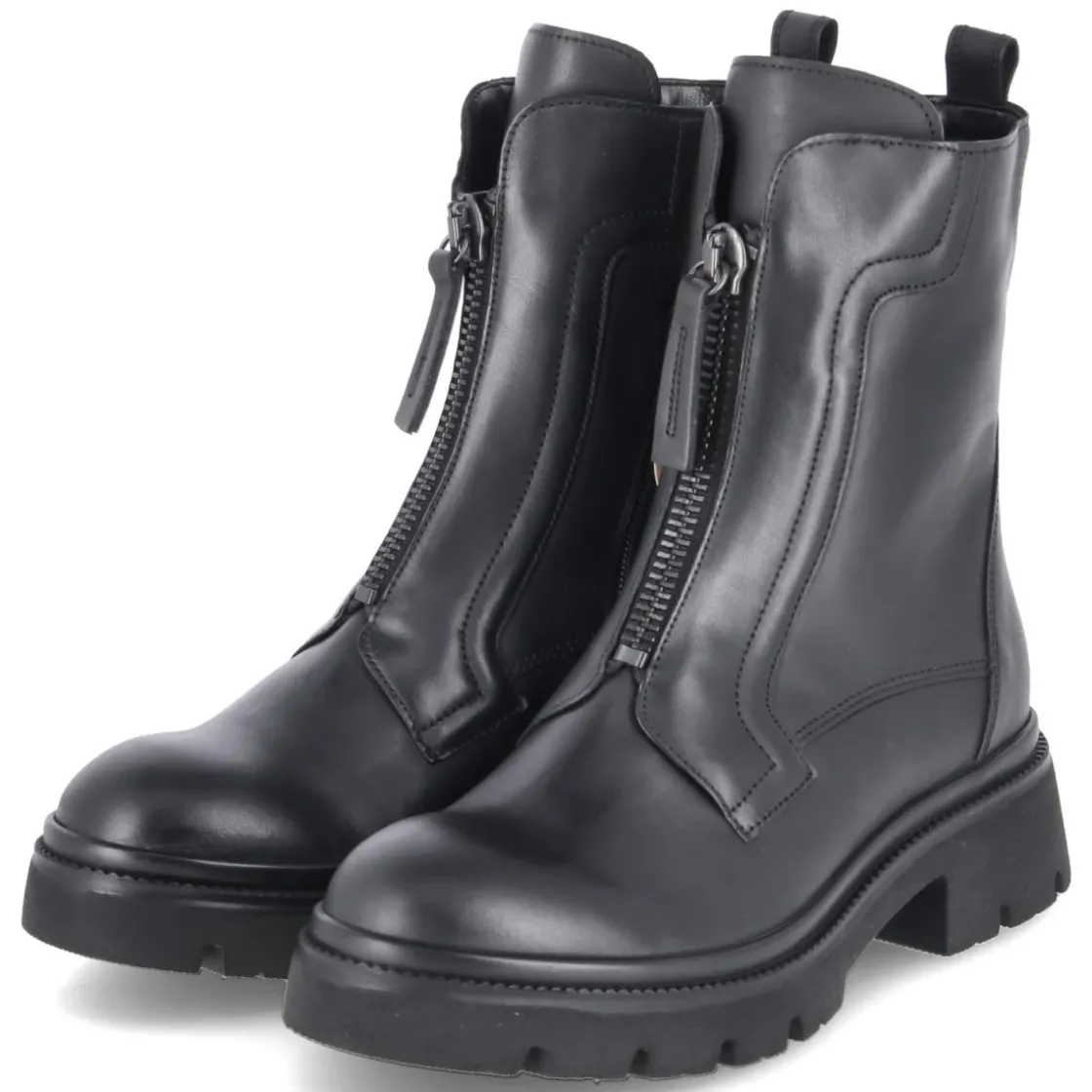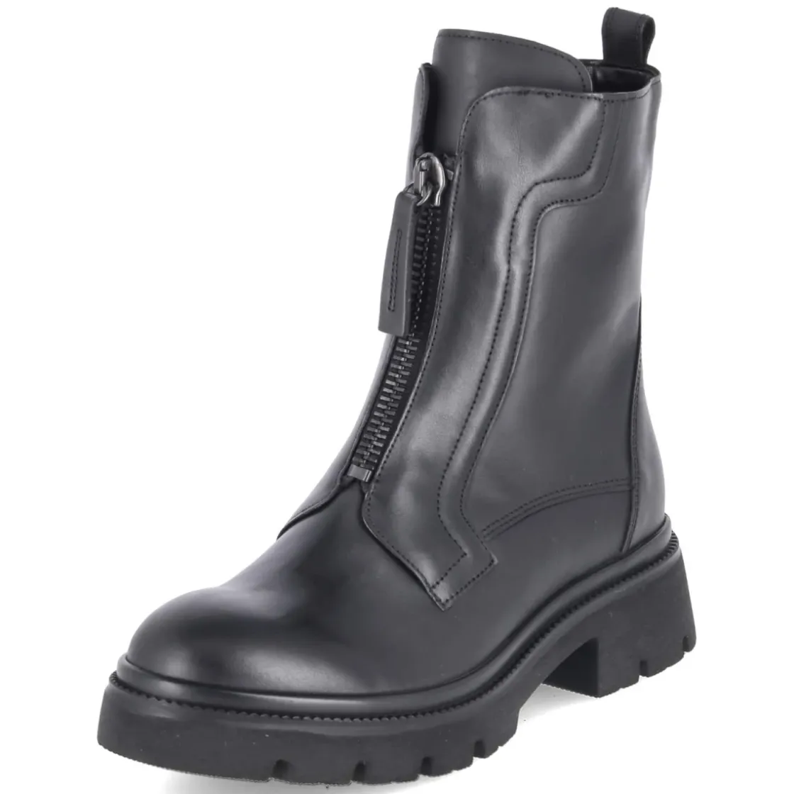 Die Gabor Stiefeletten in klassischem Schwarz verbinden moderne Optik mit verlässlicher Alltagstauglichkeit. Langlebiges Glattleder formt eine klare Silhouette mit runder Spitze, während der 4,5 cm hohe Blockabsatz stabilen Halt bietet und dezent die Silhouette streckt. Das Modell fällt normal aus und punktet mit bequemem Einstieg per Reißverschluss; ein zierender Frontreißverschluss mit abgestepptem Blatt setzt einen markanten Akzent. Die textile Decksohle, das leichte Futter für kühle Tage und das Wechselfußbett sorgen für angenehmen Tragekomfort und individuelle Anpassung. Eine rutschfeste Profilsohle gibt Sicherheit, der verstärkte Fersenbereich und die Anziehlasche erhöhen die Alltagstauglichkeit. Modetipp: Zu verkürzten Straight-Leg-Jeans und Wollmantel entsteht ein mühelos urbaner Look; mit Midikleid und blickdichten Strümpfen gelingt ein eleganter Übergangs-Style.