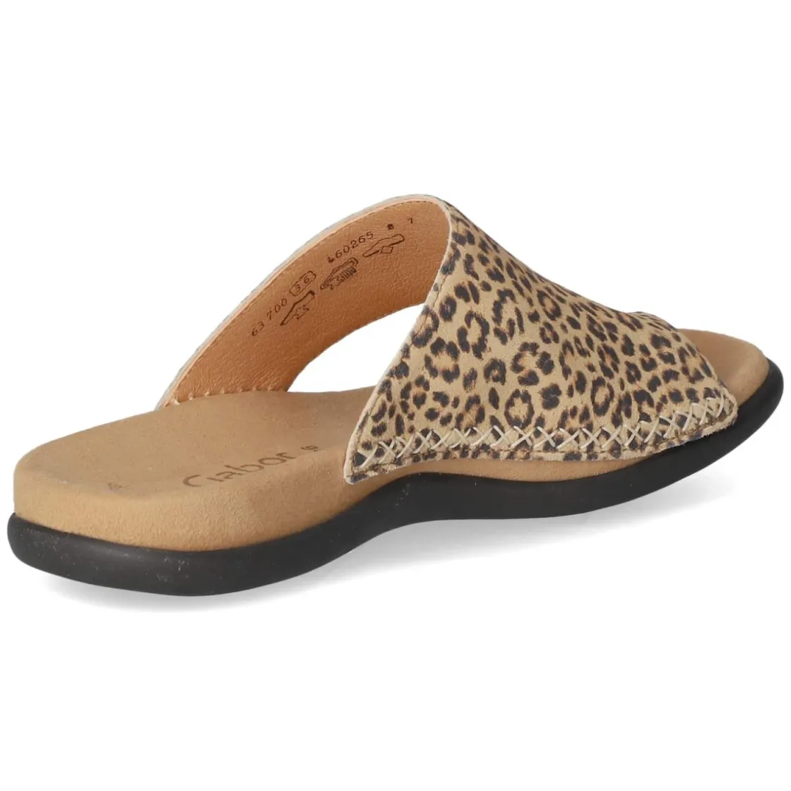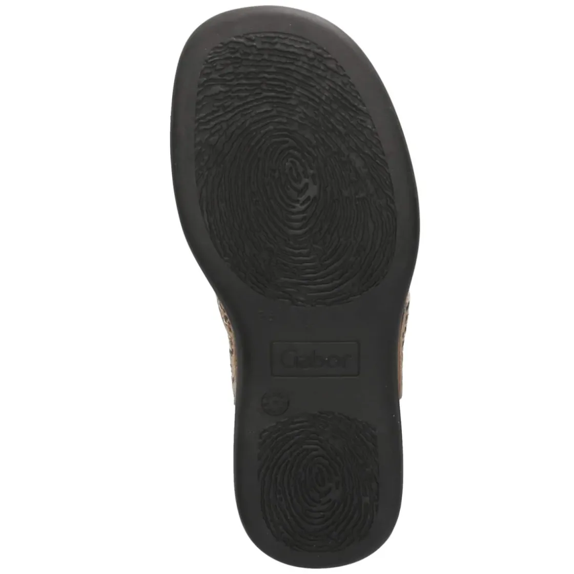 Der Gabor Zehentrenner verbindet sommerliche Leichtigkeit mit Komfort. Das Obermaterial aus weichem Rauleder zeigt sich in Beige und erhält durch ein markantes Animal Print-Detail modische Raffinesse. Atmungsaktives Echtleder sorgt für ein ausgeglichenes Fußklima, während die textile Decksohle in Kombination mit dem gepolsterten Fußbett den ganzen Tag über sanften Halt und angenehme Dämpfung bietet. Die offene Schuhspitze und der unkomplizierte Einstieg unterstreichen die entspannte Silhouette und machen den Slip-on zum unkomplizierten Begleiter im Alltag wie im Urlaub. Dank größengetreuem Sitz lässt sich das Modell verlässlich einplanen. Modetipp: Zum fließenden Midikleid in Naturtönen und einer Korbtasche kombinieren, dazu feiner Goldschmuck – so kommt der Animal Print als edler Akzent perfekt zur Geltung.