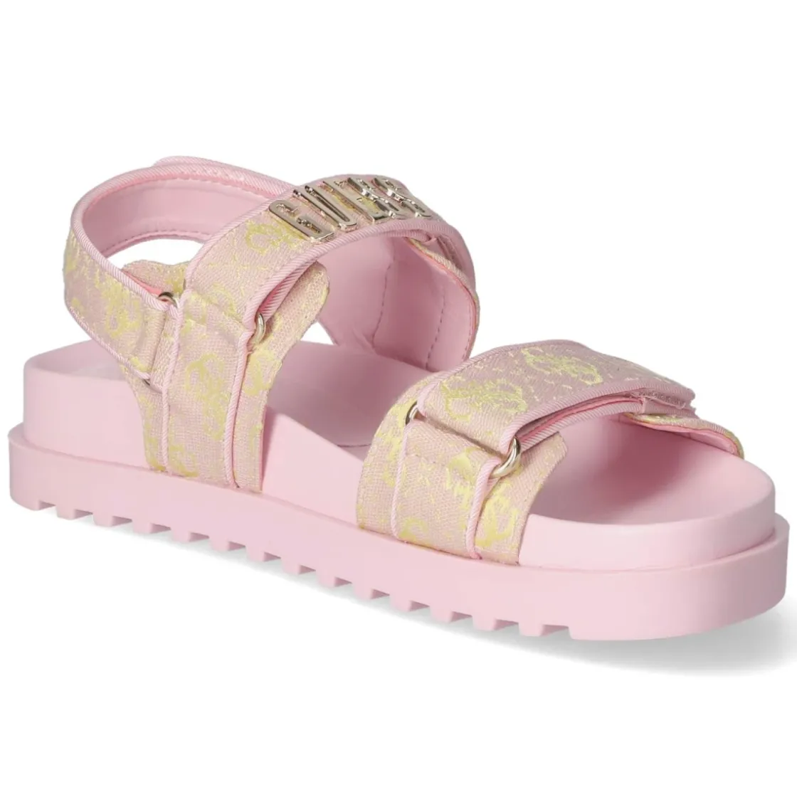 Diese pinkfarbenen Sandaletten von Guess kombinieren sommerliche Leichtigkeit mit unkomplizierter Funktion. Das luftige Textilobermaterial lässt die Füße atmen, während die offene Schuhspitze und das vorgeformte, gepolsterte Fußbett angenehmen Tragekomfort über Stunden sichern. Drei praktische Klettverschlüsse ermöglichen eine passgenaue Weitenregulierung und setzen mit goldfarbenem Markenschriftzug sowie goldgelb gesticktem Markenmuster elegante Akzente. Die rutschhemmende Laufsohle sorgt für zuverlässigen Halt auf glatten Wegen, die Decksohle aus Synthetik zeigt sich pflegeleicht. Die Passform fällt normal aus und macht den Schuh zum vielseitigen Begleiter vom Stadtbummel bis zur Sommerparty. Modetipp: Für ein frisches Update den kräftigen Pinkton mit weißer Leinenhose und Seidentop kombinieren oder als Eyecatcher zu einer hellen Denim tragen.