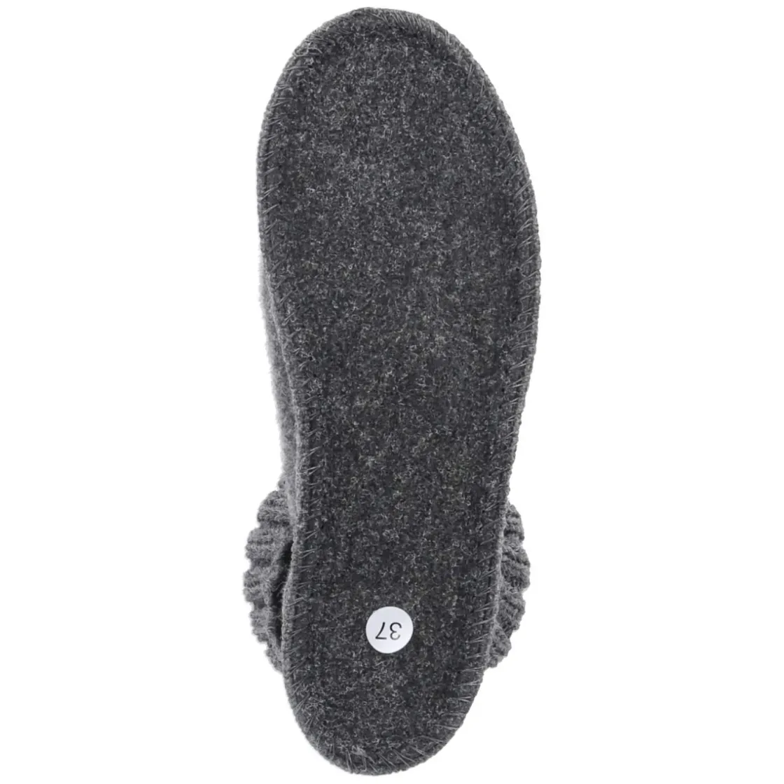 Hüttenschuh KARL von Haflinger vereint lässige Gemütlichkeit mit durchdachter Funktion. Das robuste Textilobermaterial zeigt sich im rustikalen Look und sorgt zusammen mit dem weichen Textilfutter für behaglichen Komfort in den eigenen vier Wänden. Der unkomplizierte Einstieg ohne Verschluss macht das Anziehen besonders leicht, während die runde Schuhspitze angenehm viel Zehenfreiheit bietet. In elegantem Grau gestaltet, fügt sich das Modell mühelos in unterschiedliche Home-Outfits ein. Die Decksohle aus Textil unterstützt ein angenehmes Fußklima, ideal für entspannte Stunden. Die Passform fällt normal aus und ermöglicht eine verlässliche Größenwahl. Für Damen konzipiert und auf erwachsene Bedürfnisse abgestimmt, steht KARL für zeitlose Wohlfühlmomente. Modetipp: Zu gerippten Strickleggings und einer grob gestrickten Oversize-Cardigan kombiniert, entsteht ein harmonischer Chalet-Look.