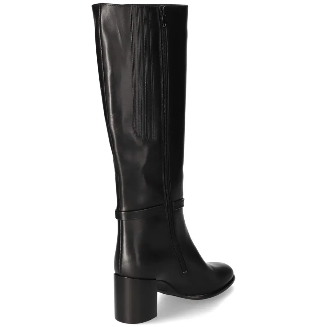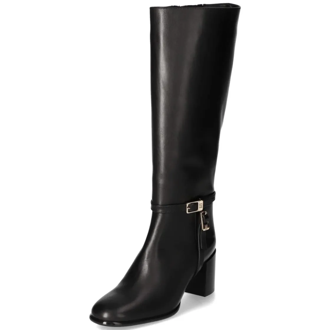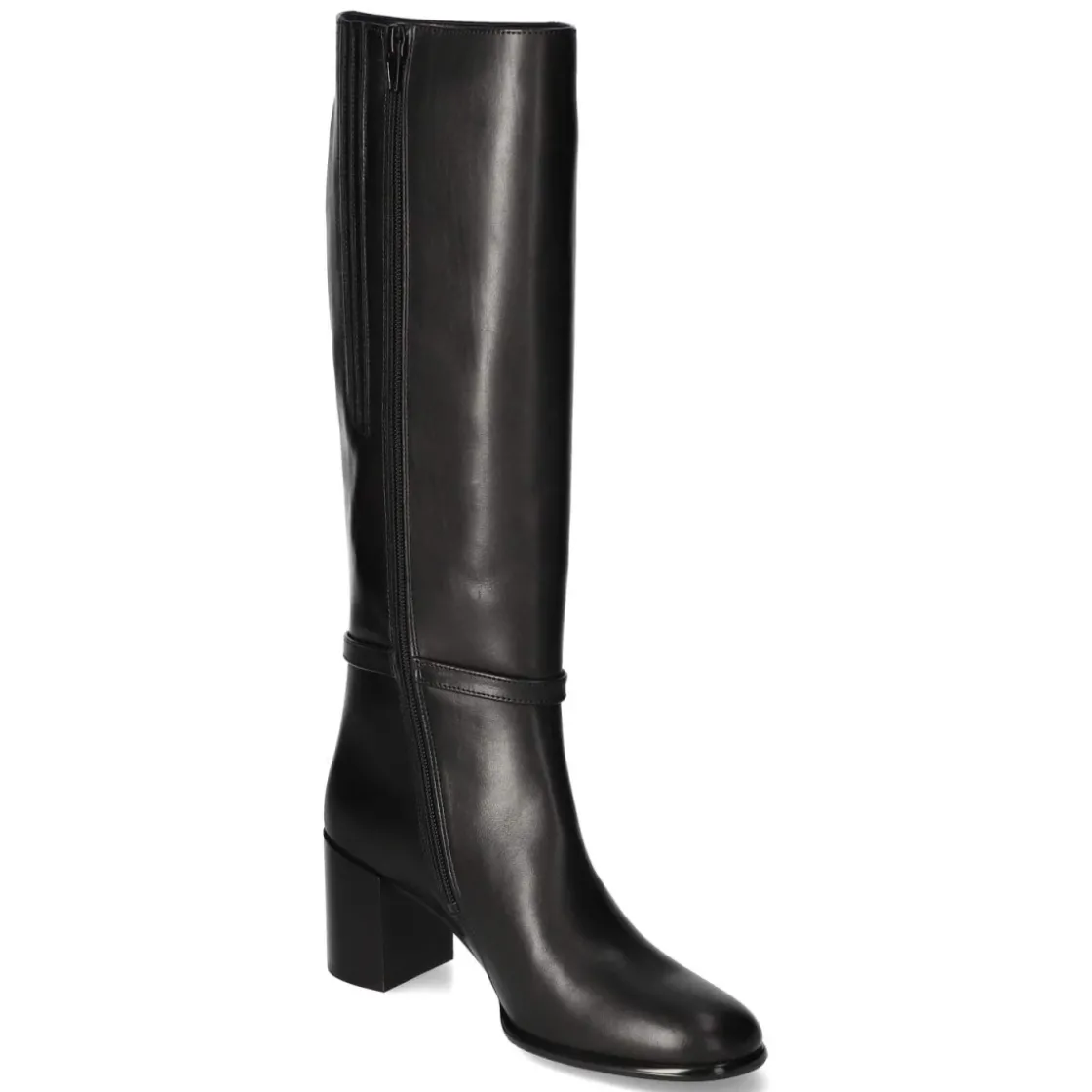 Der Damenstiefel von Högl setzt in tiefem Schwarz auf zeitlose Eleganz und verlässlichen Komfort. Glattes, atmungsaktives Echtleder und eine lederne Decksohle umschließen den Fuß angenehm, während das leichte Futter an kühlen Tagen wärmt. Der 7 cm hohe Blockabsatz streckt die Silhouette und bleibt dank breiter Auflagefläche stabil. Eine runde Spitze sorgt für bequemen Zehenraum, der praktische Reißverschlusseinstieg erleichtert das An- und Ausziehen. Zwei Zierriemen mit goldfarbenen Schnallen akzentuieren den klassischen Look, der Schaft misst ca. 43 cm in der Höhe und ca. 36 cm im Umfang. Die flexible, rutschhemmende Laufsohle bietet Trittsicherheit auf urbanem Terrain. Das Modell fällt normal aus und empfiehlt sich als vielseitiger Begleiter von Büro bis Dinner. Modetipp: Zu Midirock in A-Linie und Wollmantel tragen, alternativ zu schmaler Denim, die locker in den Schaft gesteckt wird.
