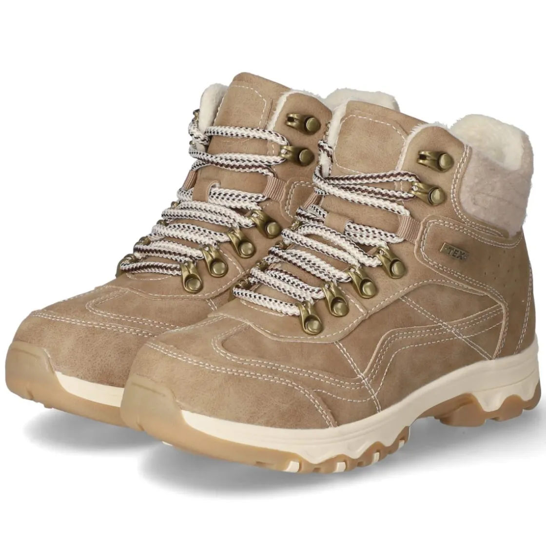 Die Damen-Stiefeletten von Jane Klain in warmem Taupe verbinden urbanen Look mit verlässlichem Komfort. Das robuste Obermaterial aus Synthetik und die TEX-Ausstattung bieten leichten Wetterschutz, während der Schaftrand in Filzoptik einen weichen Akzent setzt. Dank rund gearbeiteter Schuhspitze, normal ausfallender Passform und synthetischer Decksohle bleibt es selbst an langen Tagen bequem. Eine Anziehhilfe erleichtert den Einstieg, die Schnürung erlaubt präzises Anpassen, und der verstärkte Zehen- sowie Fersenbereich sorgt für Stabilität. Der flexible, rutschfeste Profilboden gibt Halt auf glatten Wegen und im Stadtalltag. Modetipp: Ton-in-Ton mit Strickkleid, Wollmantel und Handschuhen in Naturtönen entsteht ein zeitloser Look; für lässige Momente harmonieren Slim-Jeans und ein melierter Oversize-Pullover.
