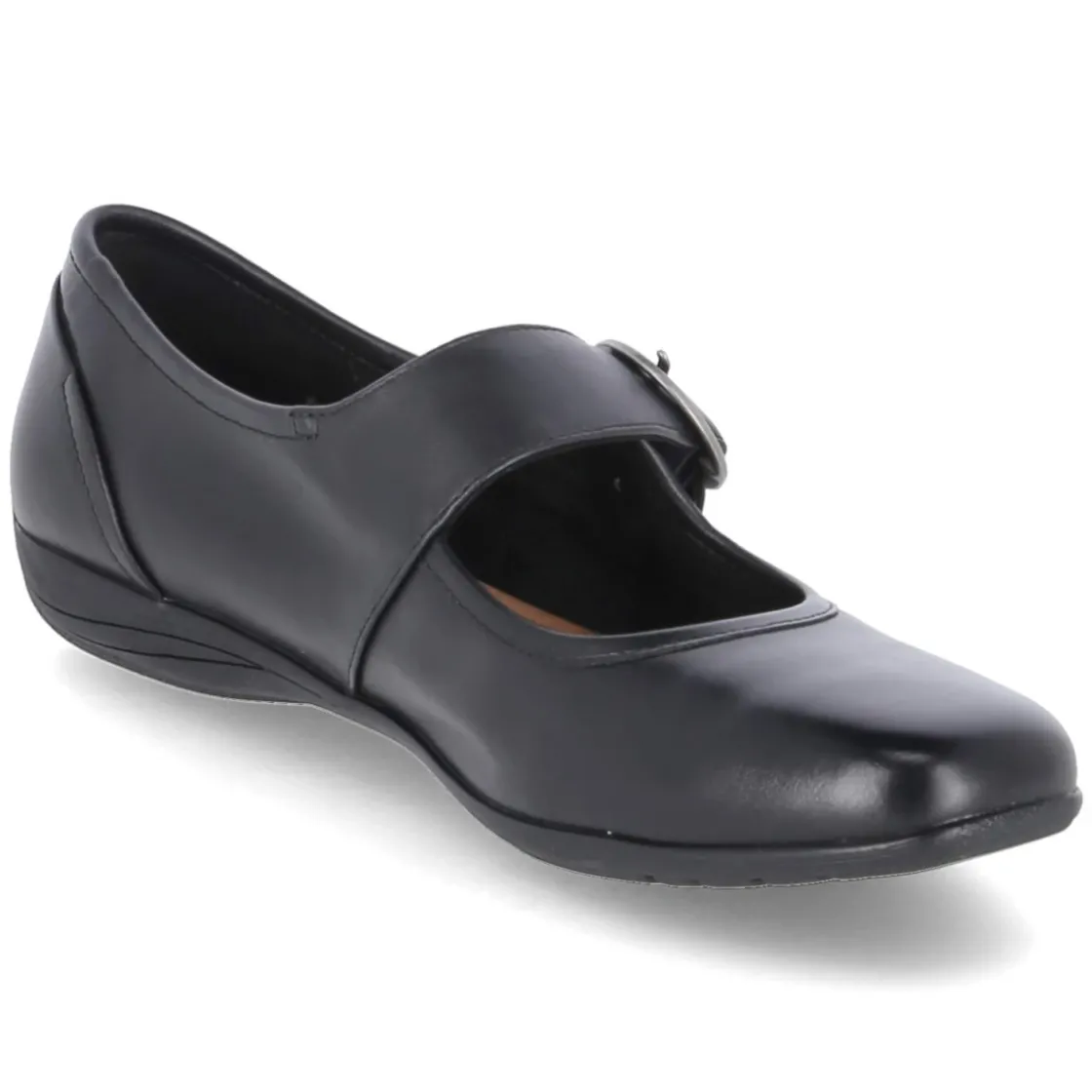 Der Ballerina FENJA 18 von Josef Seibel verbindet schlichte Eleganz mit verlässlichem Komfort. Glattes, langlebiges Echtleder in klassischem Schwarz formt eine runde Silhouette, die durch ein breites Riemchen mit Schnalle und Elastikeinsatz über dem Spann sicher sitzt. Eine verstärkte Ferse stabilisiert, während die gepolsterte Lederdecksohle und das weiche Fußbett den ganzen Tag über angenehmes Tragegefühl bieten. Die sehr flexible, rutschhemmende Laufsohle ermöglicht leises, trittsicheres Gehen auf unterschiedlichen Untergründen. Der Schuh fällt normal aus und ist damit unkompliziert zu kombinieren. Modetipp: Zu knöchellangen Zigarettenhosen und einem feinen Stricktop entsteht ein moderner Office-Look; ein fließender Midirock verleiht dem Modell eine feminine Note für den Abend.