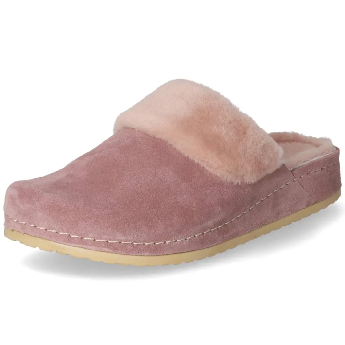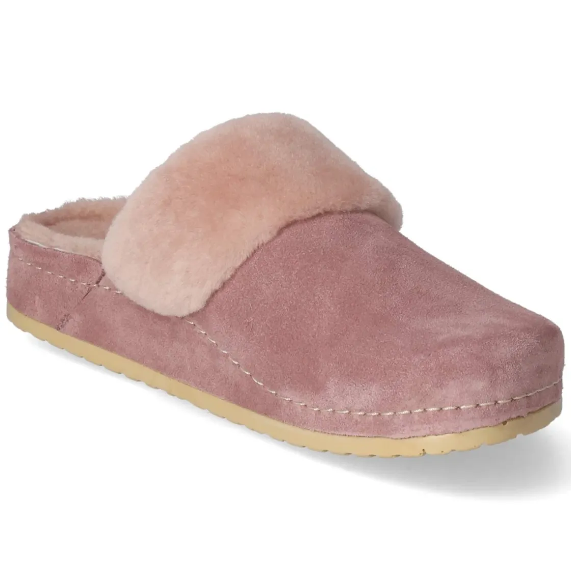Kaerlek präsentiert mit NANA einen Hausschuh im klassischen Clog-Design, der Komfort und Stil in den eigenen vier Wänden verbindet. Langlebiges Echtleder in zartem Rosa umschließt den Fuß, ein kleiner Elastikeinsatz erleichtert den unkomplizierten Einstieg. Der weiche Lammfellrand am Spann und das Warmfutter sorgen für behagliche Wärme, während die runde Spitze und das vorgeformte, gepolsterte Lederfußbett den Tragekomfort abrunden. Die hautfreundliche Lederdecksohle und die flexible, rutschfeste Sohle begleiten zuverlässig durch den Tag. Dank der Konstruktion ohne Verschluss bleibt alles angenehm lässig. Das Modell fällt kleiner aus; für optimalen Sitz ist die Wahl einer Nummer größer ratsam. Modetipp: Zu feinstrickigen Loungebuxen und einem oversized Cardigan in Creme wirkt das Rosa besonders edel und setzt einen sanften Farbakzent.
