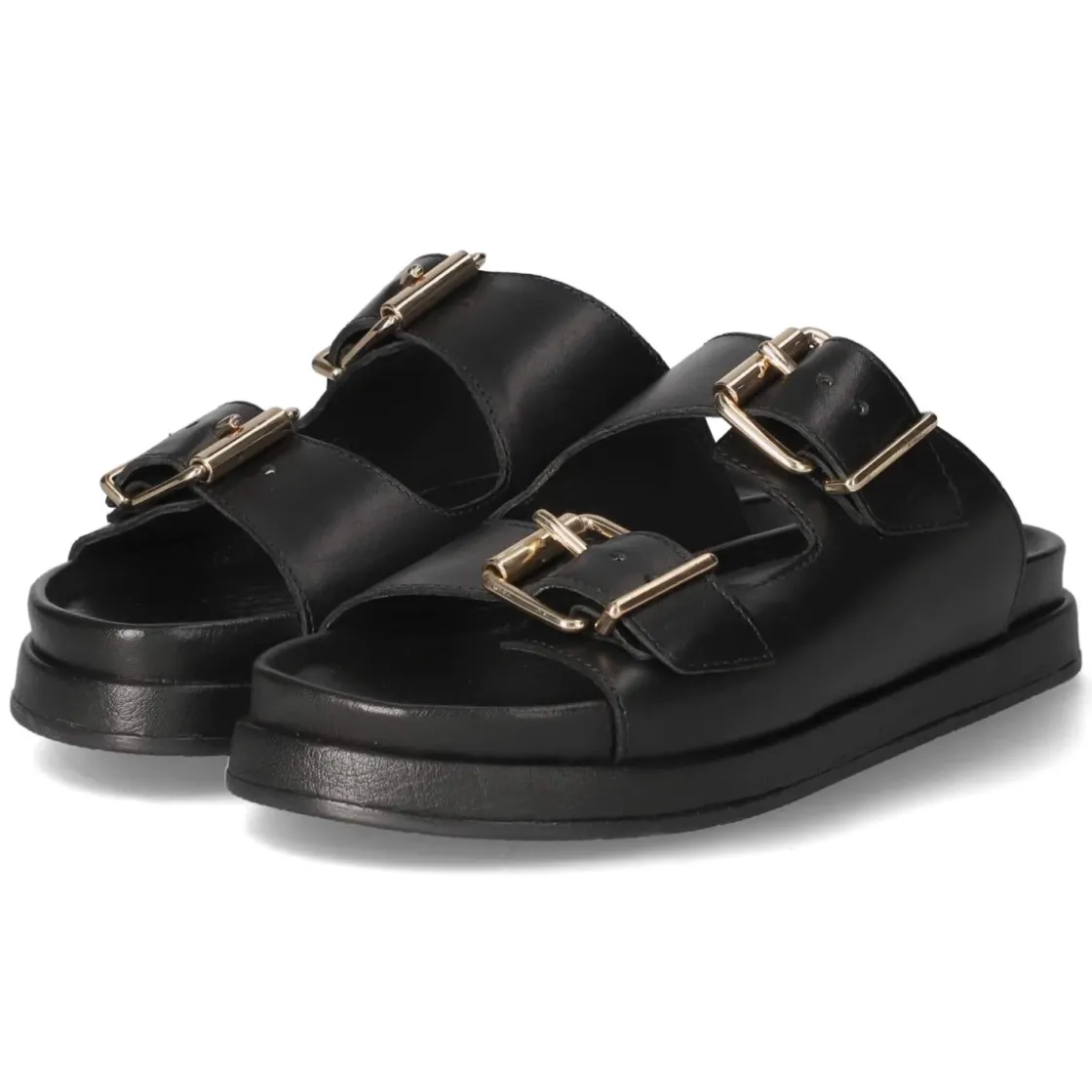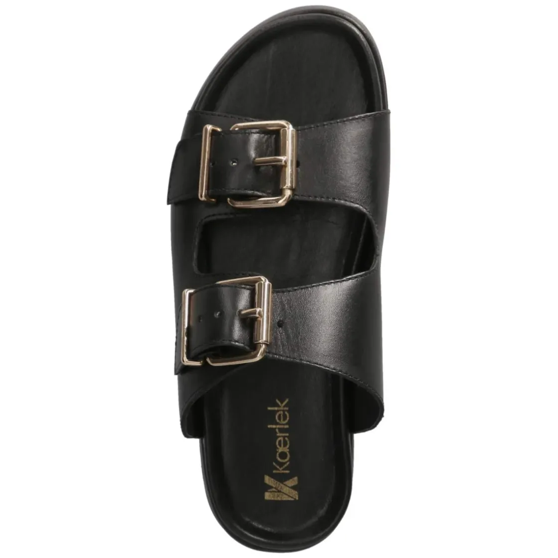 Die Pantoletten von Kaerlek verbinden zeitlose Eleganz mit hohem Tragekomfort. Langlebiges Echtleder in schwarzem Glattleder verleiht dem offenen Design eine edle Note, während die zwei goldfarbenen Schnallen einen stilvollen Akzent setzen und zugleich die Weite individuell regulieren. Das gepolsterte Fußbett und die lederne Decksohle sorgen für ein angenehmes Laufgefühl, unterstützt von einer flexiblen, rutschhemmenden Laufsohle für zuverlässigen Halt im Alltag. Der Schnitt fällt normal aus und macht die Pantoletten zur unkomplizierten Wahl für zahlreiche Anlässe. Ob für Büro, City oder Wochenendtrip, die guten Kombinationsmöglichkeiten reichen von minimalistischen Looks bis zu femininen Ensembles. Modetipp: Zu einer weiten Leinenhose und einem schwarzen Satin-Top entsteht ein moderner Monochrom-Look, der mit goldfarbenem Schmuck die Schnallen harmonisch aufgreift.
