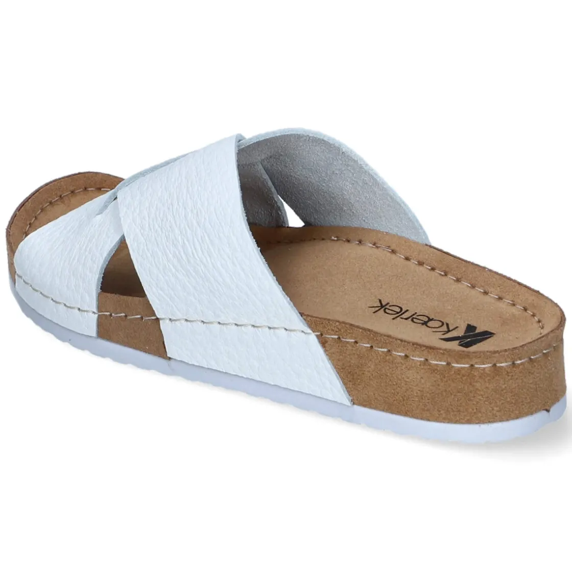 Die Kaerlek Pantoletten vereinen zeitlose Eleganz mit komfortorientierter Funktion. Glattes, weißes Echtleder formt zwei breite, überkreuzte Riemen, die den Spann sicher umschließen und das modische Design unterstreichen. Das vorgeformte, weiche Tieffußbett mit Lederdecksohle sorgt für angenehme Dämpfung und ein natürliches Fußklima, während die flexible Profilsohle zuverlässigen Halt bietet. Ohne Verschluss und mit offener Schuhspitze gelingt das Hineinschlüpfen mühelos. Die hochwertige Verarbeitung aus langlebigem Leder begleitet durch viele Saisons. Hinweis: fällt schmaler aus. Modetipp: zu einem cremefarbenen Leinen-Set oder einem fließenden Midi-Kleid stylen, dazu eine strukturierte Basttasche für einen luftigen Sommer-Look.