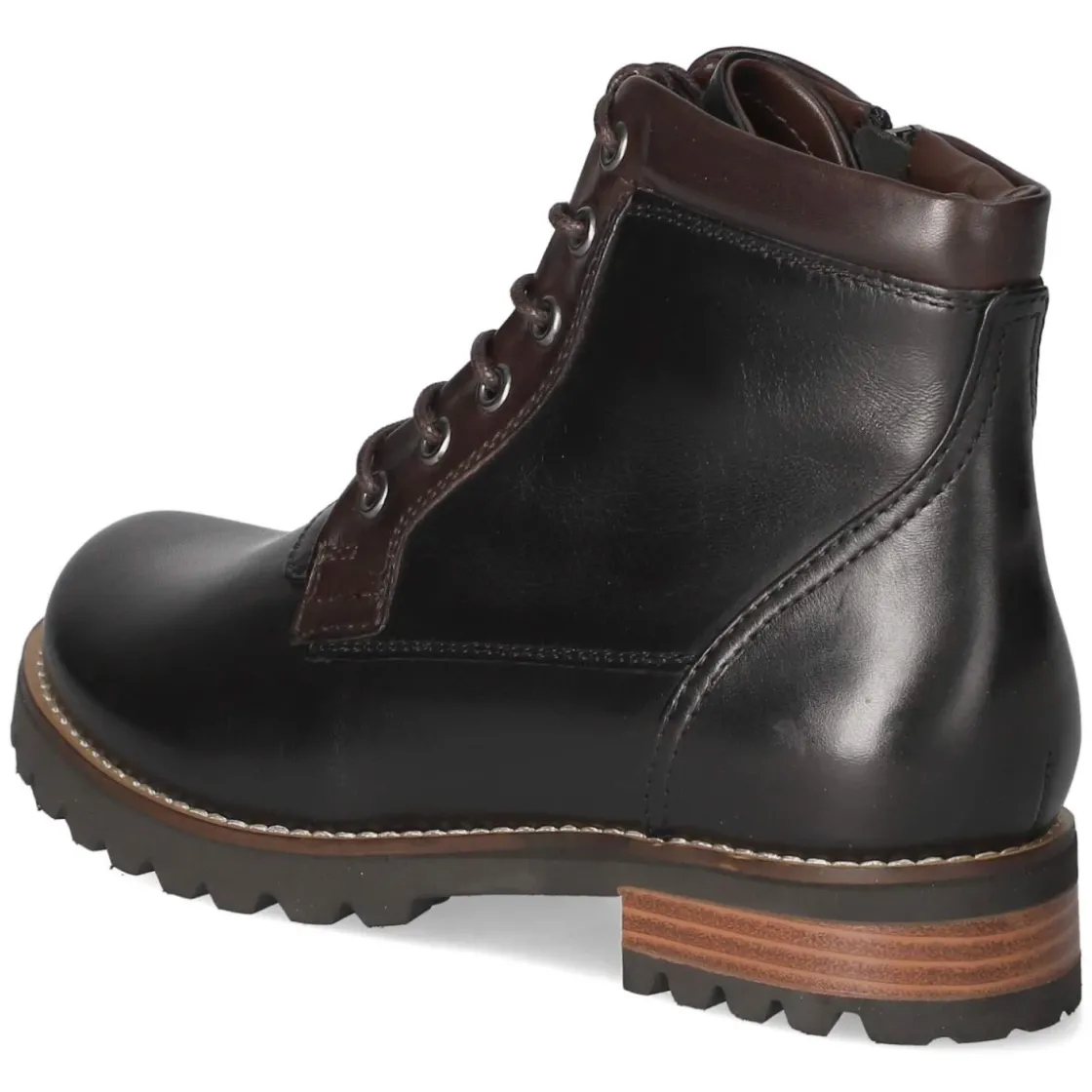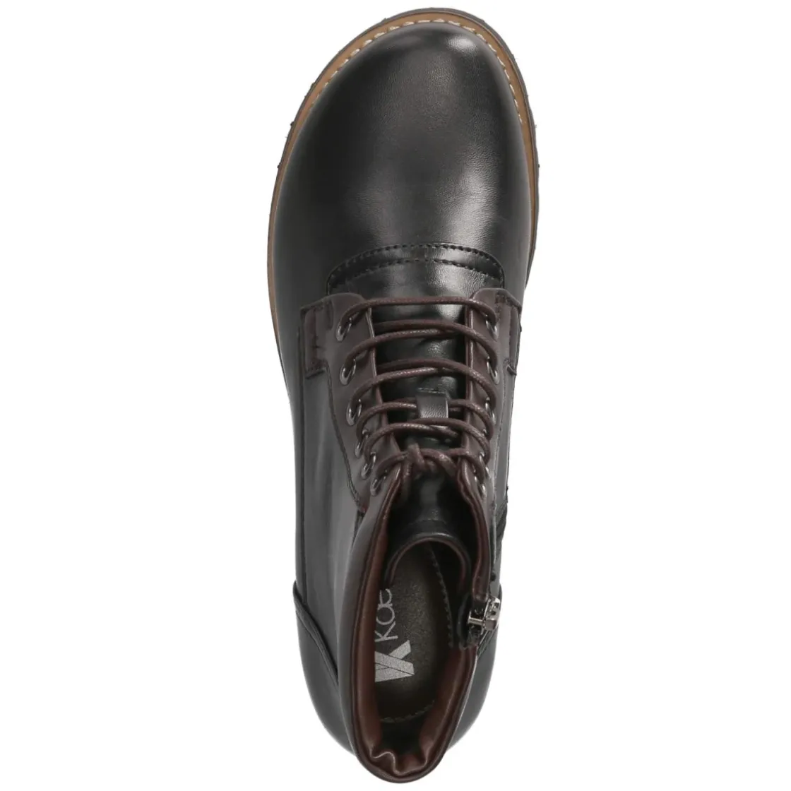 Kaerlek Schnürstiefeletten in klassischem Schwarz verbinden klare Linien mit durchdachter Funktion. Atmungsaktives Echtleder in glatter Ausführung umschließt den Fuß mit angenehmer Stabilität, während die runde Spitze und der 3‑cm‑Blockabsatz einen entspannten Auftritt ermöglichen. Dank Schnürung und seitlichem Reißverschluss, ergänzt um einen zusätzlichen Zipper, gelingt das An- und Ausziehen im Alltag unkompliziert. Das leichte Futter wärmt an kühlen Tagen, das gepolsterte Fußbett entlastet bei langen Wegen, und die flexible, rutschfeste Laufsohle sorgt für verlässlichen Halt. Eine verstärkte Ferse unterstützt die Form dauerhaft. Die Passform fällt normal aus und eignet sich für erwachsene Damen, die Vielseitigkeit schätzen. Modetipp: Besonders stimmig wirkt das Modell zu einer schmalen Anzughose, einem Feinstrickrolli und einem langen Wollmantel.