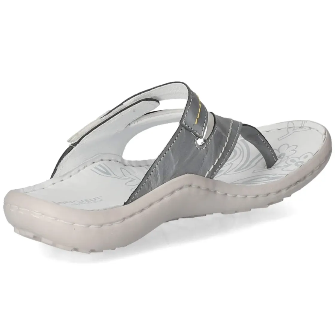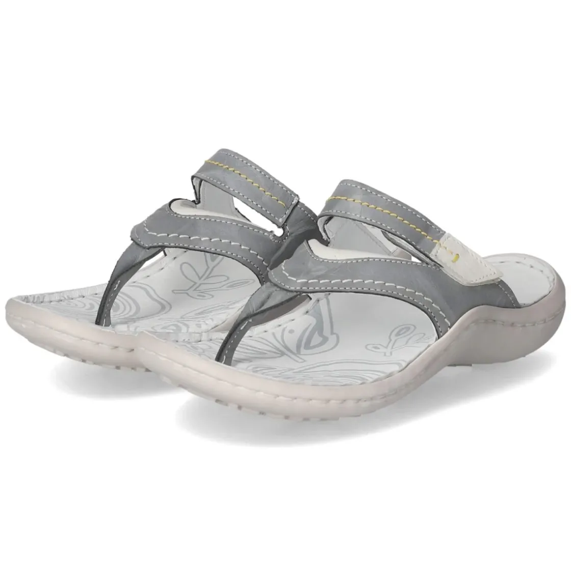 Diese Damen-Pantoletten von Krisbut verbinden entspannten Komfort mit klarer Linie. Weiches, atmungsaktives Echtleder in edlem Grau umschließt den Fuß, während die hautfreundliche Lederdecksohle ein angenehmes Klima bewahrt. Der praktische Klettverschluss ermöglicht eine passgenaue Weitenregulierung und erleichtert das An- und Ausziehen, die runde Schuhspitze bietet Zehenfreiheit für lange Tage auf den Beinen. Das Obermaterial aus hochwertigem Glattleder wirkt dezent und fügt sich mühelos in Business- wie Freizeitlooks ein. Die Passform fällt normal aus und überzeugt durch angenehme Stabilität ohne aufzutragen. Ob unterwegs in der Stadt oder auf Reisen, diese Pantolette liefert verlässlichen Alltagskomfort in zeitloser Optik. Modetipp: Zu einer weit schwingenden Leinenhose und einem tonalen Stricktop entsteht ein moderner Monochrom-Look; feiner Silber- oder Edelstahlschmuck setzt puristische Akzente.