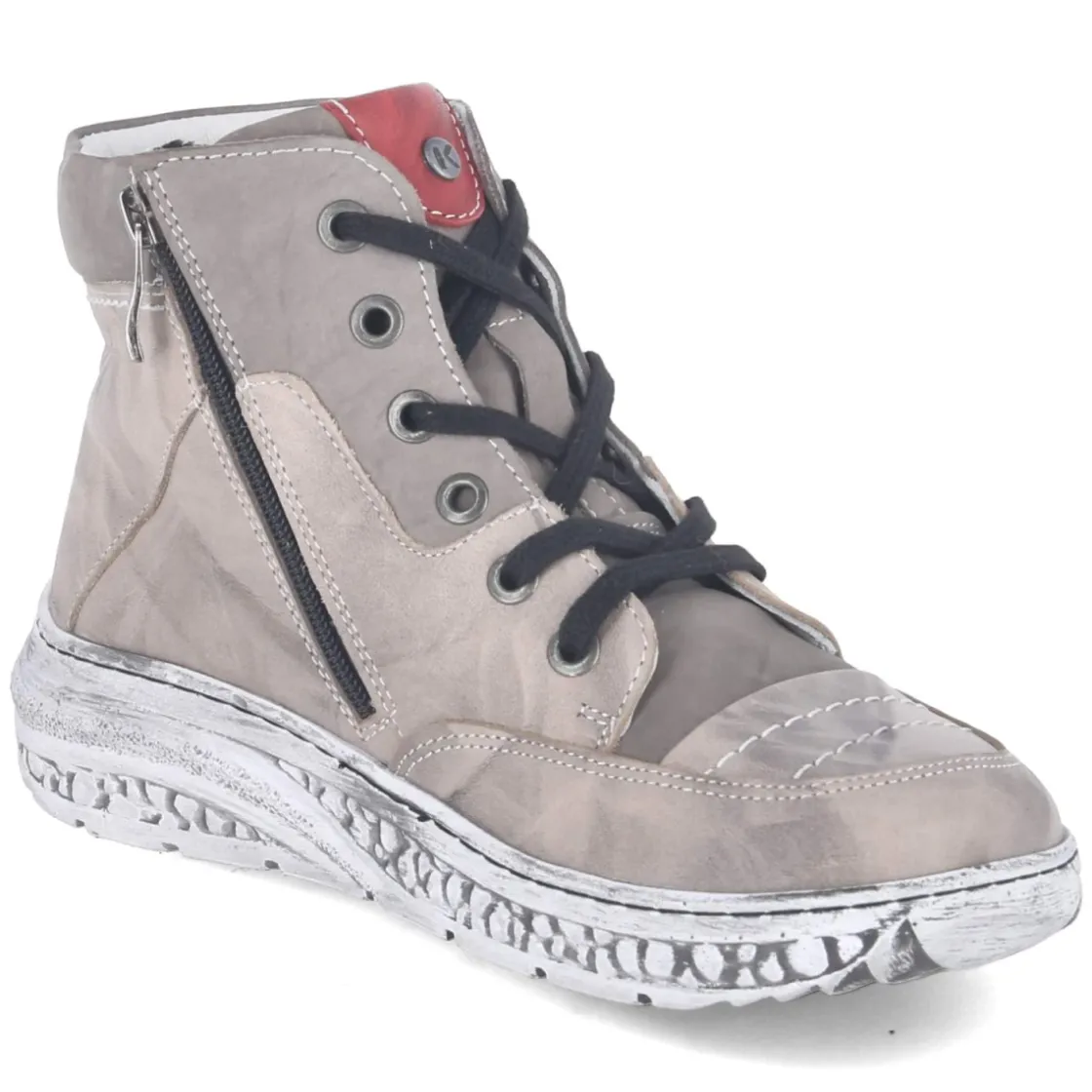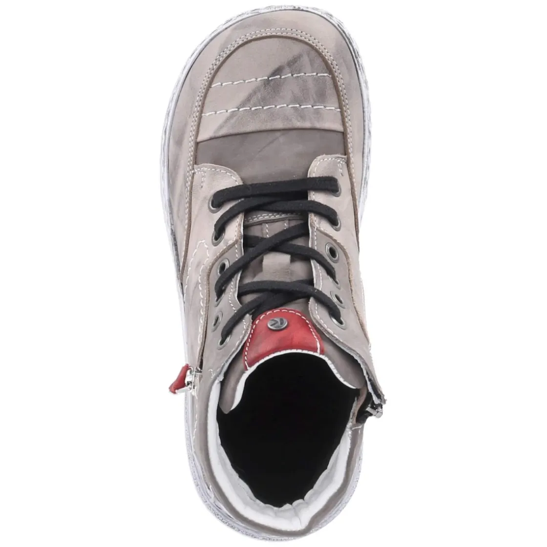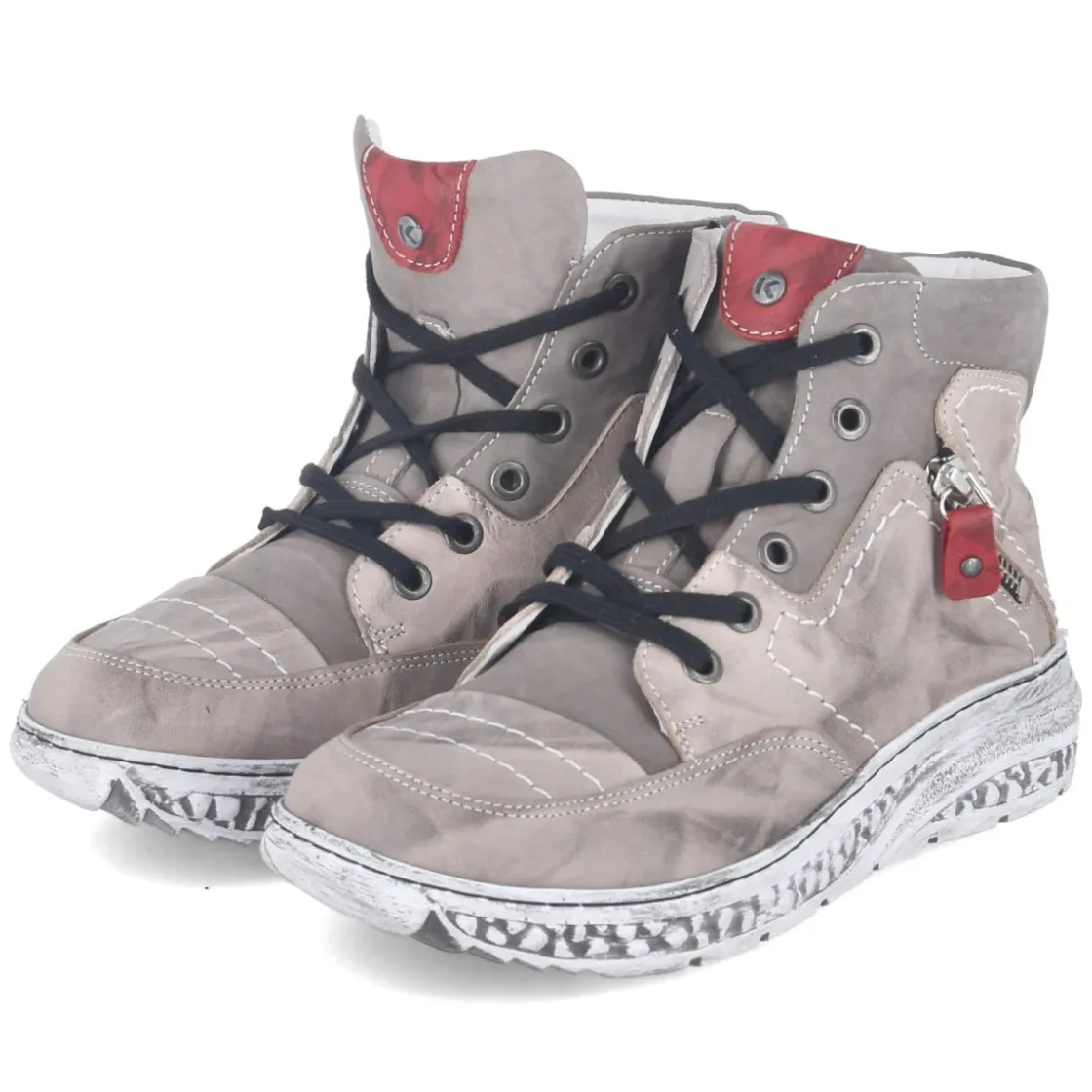 Der Damen-Schnürstiefel von Krisbut vereint robuste Alltagstauglichkeit mit urbaner Lässigkeit. Glattes, langlebiges Echtleder in Grau erhält durch den dezenten Used-Look und markante Ziernähte eine charaktervolle Note, während ein Zierreißverschluss den Style akzentuiert. Schnürsenkel sorgen für individuellen Halt, der seitliche Reißverschluss für schnelles An- und Ausziehen. Ein rund gearbeiteter Vorderfuß und der verstärkte Zehen- und Fersenbereich bieten Komfort und Schutz. Das leichte Futter wärmt an kühlen Tagen, die flexible, rutschfeste Laufsohle gewährleistet sicheren Tritt. Das Wechselfußbett unterstützt variablen Tragekomfort; die Passform fällt normal aus. Modetipp: Zu Cropped-Jeans und einem softem Strickmantel kommt der Grauton modern zur Geltung, ein Wollschal in Creme rundet den Look ab.