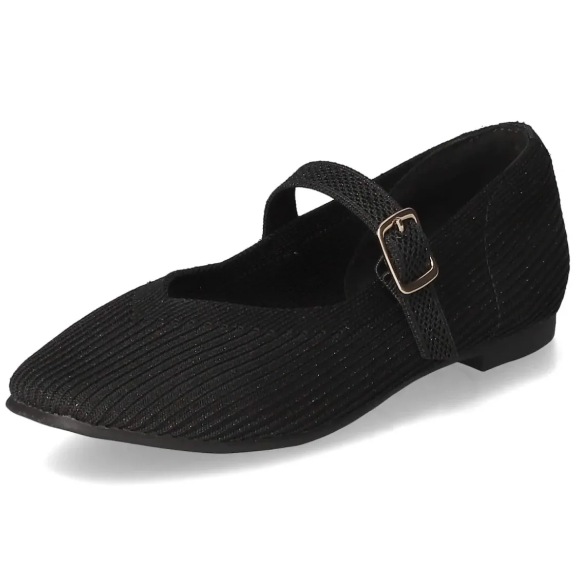 La Strada Ballerinas in Schwarz vereinen feminine Eleganz mit alltagstauglichem Komfort. Das Obermaterial aus Textil zeigt eine feine Cordoptik, die von einem dezent glitzernden Silberfaden durchzogen wird – ein schimmernder Akzent, der den cleanen Look raffiniert aufwertet. Ein Zierriemen mit goldfarbener Schnalle setzt einen edlen Kontrast und ergänzt die praktische Schnalle, die sicheren Halt verspricht. Die runde Spitze wirkt klassisch und schmeichelt dem Fuß, während die verstärkte Ferse Stabilität gibt. Für langes Tragen sorgt das weich gepolsterte Fußbett mit textiler Decksohle, die flexible, rutschhemmende Laufsohle unterstützt einen souveränen Auftritt. Der Schnitt fällt größengetreu aus und eignet sich für den unkomplizierten Einsatz vom Büro bis zum Dinner. Modetipp: Zu Cropped-Jeans und schwarzem Blazer tragen, dazu eine goldene Armspange aufgreifen – so strahlt der feine Glitzer noch stilvoller.