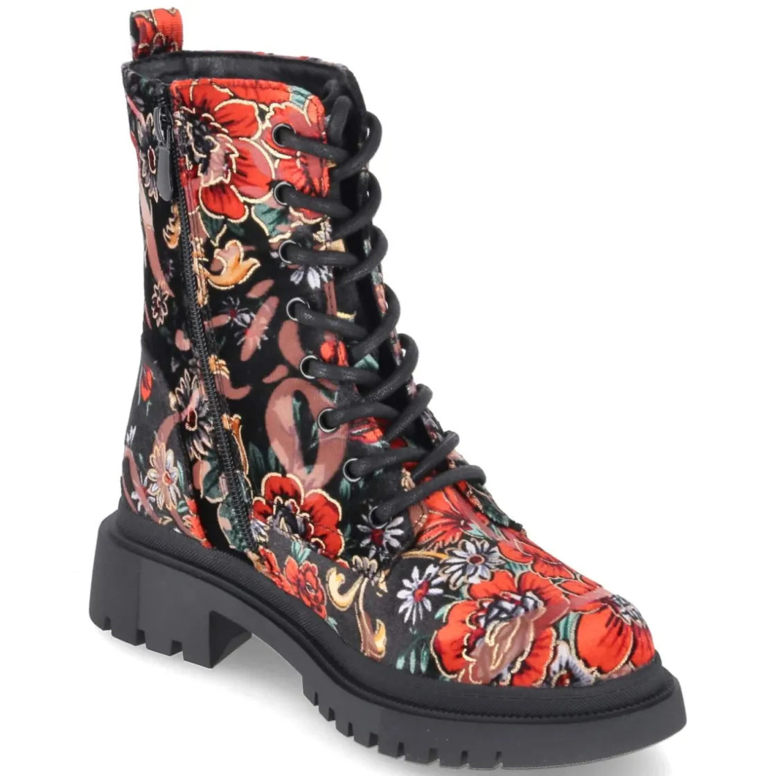La Strada zeigt mit diesen Damen-Boots eine elegante Fusion aus Komfort und Statement-Design. Schwarzes Textil mit samtiger Oberfläche bildet die Bühne für ein barockes Blumenmuster mit feinen goldenen Details, das der runden Silhouette edlen Glanz verleiht. Der 4 cm hohe Blockabsatz sorgt für Stabilität im Alltag, während Schnürsenkel und Reißverschluss ein unkompliziertes An- und Ausziehen ermöglichen. Eine Anziehlasche unterstützt zusätzlich. Innen verwöhnt leichtes Futter an kühlen Tagen, das Memory Foam Fußbett passt sich weich an und die flexible, rutschfeste Profilsohle bietet sicheren Halt. Mit Decksohle aus Textil, normaler Passform und dem Versprechen für den perfekten Auftritt richtet sich dieses Modell an Erwachsene, die Ausdruck und Bequemlichkeit verbinden wollen. Modetipp: Zu Midikleid in Uni-Schwarz und strukturiertem Wollmantel entsteht ein stilvoller Look mit subtiler Opulenz.