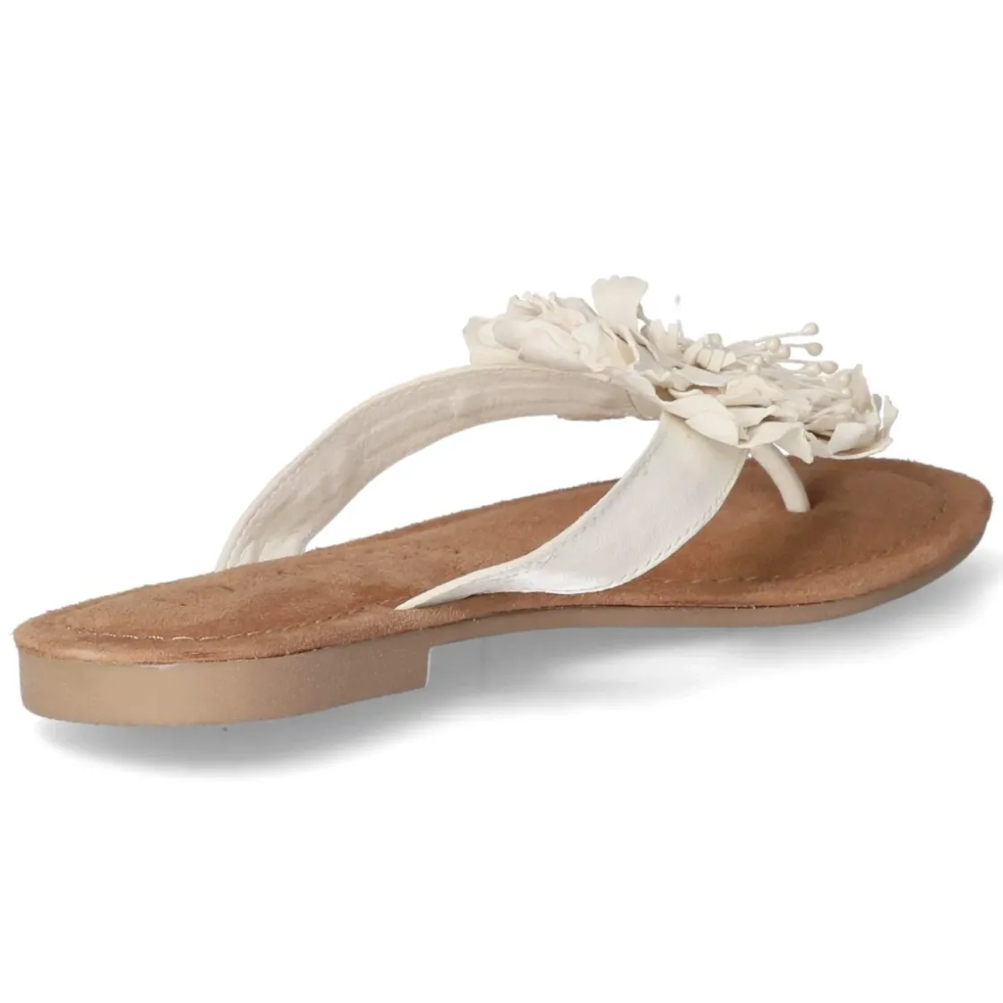 Der LAZAMANI Zehentrenner in strahlendem Weiß verbindet festliches Design mit sommerlicher Leichtigkeit. Das Obermaterial aus hochwertigem Glattleder und eine atmungsaktive Decksohle aus Echtleder sorgen für ein angenehmes Fußklima, während das gepolsterte Lederfußbett sanft dämpft. Die offene Schuhspitze unterstreicht die luftige Silhouette, die große, fein gearbeitete Blume am Zehenbereich setzt einen eleganten Akzent. Dank flexibler, griffiger Laufsohle bietet das Modell zuverlässigen Halt auf unterschiedlichsten Untergründen, ganz ohne Verschluss und im Handumdrehen angezogen. Die Passform fällt normal aus und eignet sich damit ideal für vielfältige Anlässe von Gartenparty bis Sommerhochzeit. Modetipp: Zu einem fließenden Midikleid in Pastelltönen und zarten Perlmutt-Accessoires getragen, entfaltet der weiße Zehentrenner seine festliche Ausstrahlung besonders stilvoll.