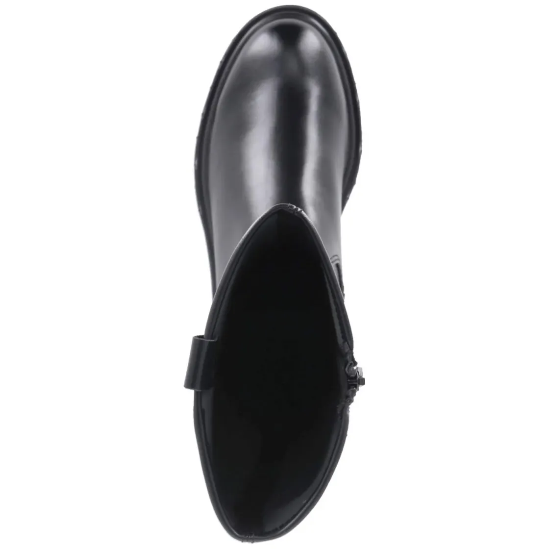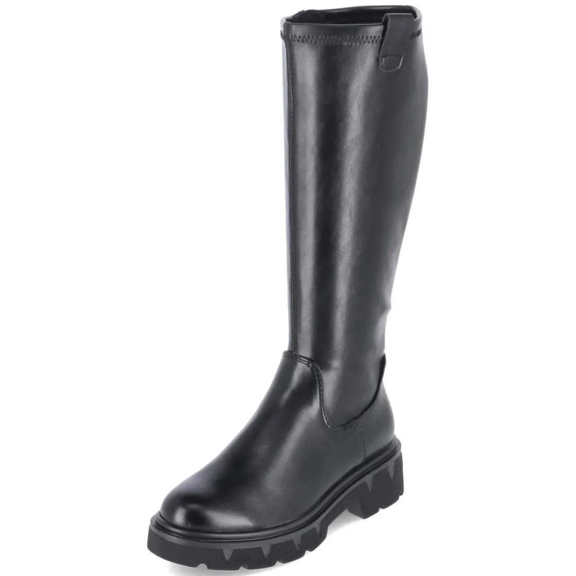 Der schwarze Schaftstiefel von Marco Tozzi vereint klaren Look und Alltagstauglichkeit. Das glatte Obermaterial aus Synthetik setzt eine edle Note, bleibt dank veganer Materialien tierfrei. Ein 5 cm hoher Blockabsatz sorgt für Standfestigkeit, die runde Spitze wirkt lässig und zeitlos. Der seitliche Reißverschluss und eine praktische Anziehlasche erleichtern den Einstieg, während der stretchige Schaft mit ca. 37 cm Höhe und etwa 34 cm Umfang bequem am Bein anliegt. Innen verwöhnt leichtes Futter an kühlen Tagen, das gepolsterte Fußbett und das relaxt leichte Tragegefühl begleiten mühelos durch lange Wege. Die textile Decksohle ergänzt den Komfort. In der Passform fällt das Modell normal aus und fügt sich unkompliziert in den Alltag. Modetipp: Zu Midikleid in Strick und Oversize-Mantel entsteht eine elegante Linie, die den Blockabsatz betont und den Stiefel zum ruhigen Anker urbaner Looks macht.