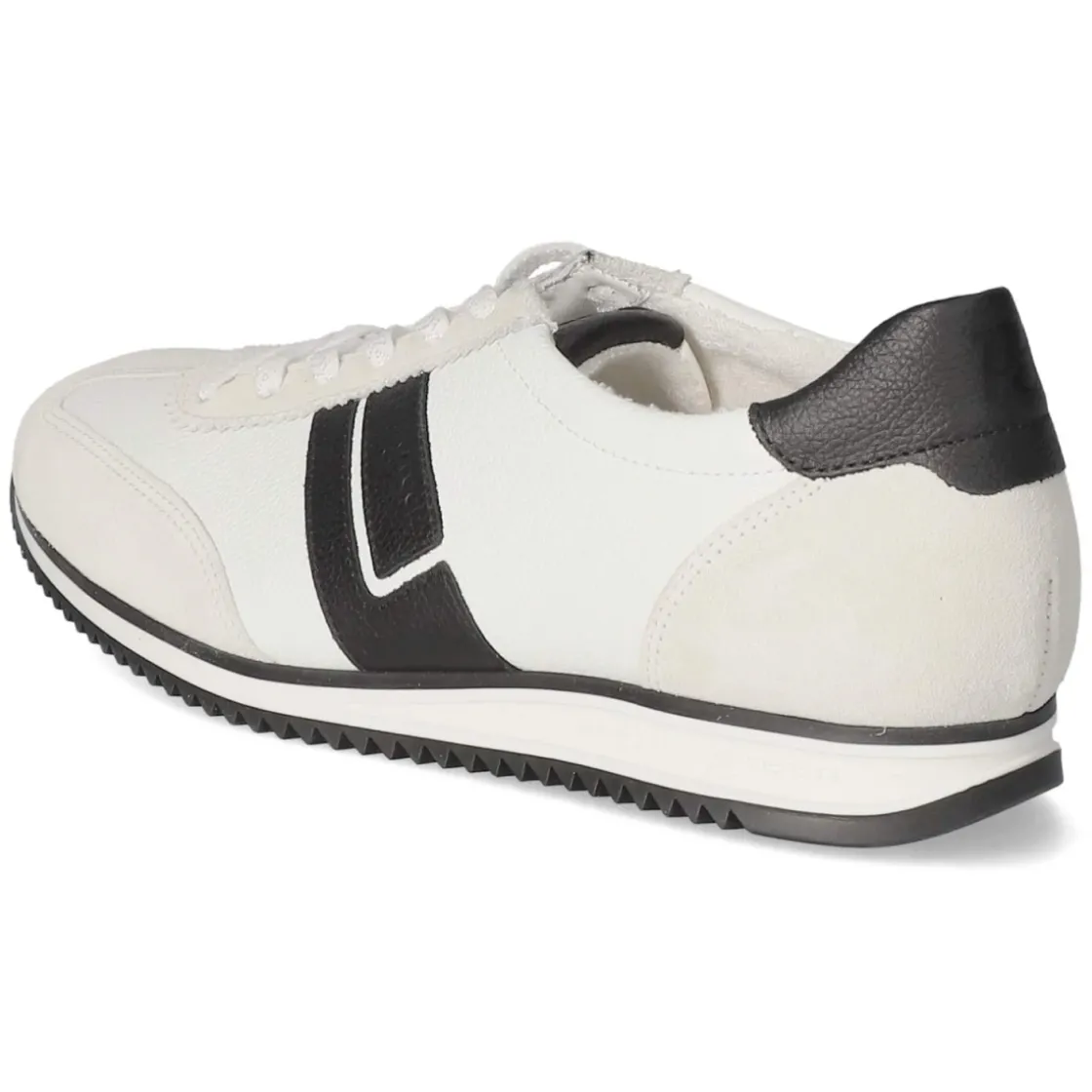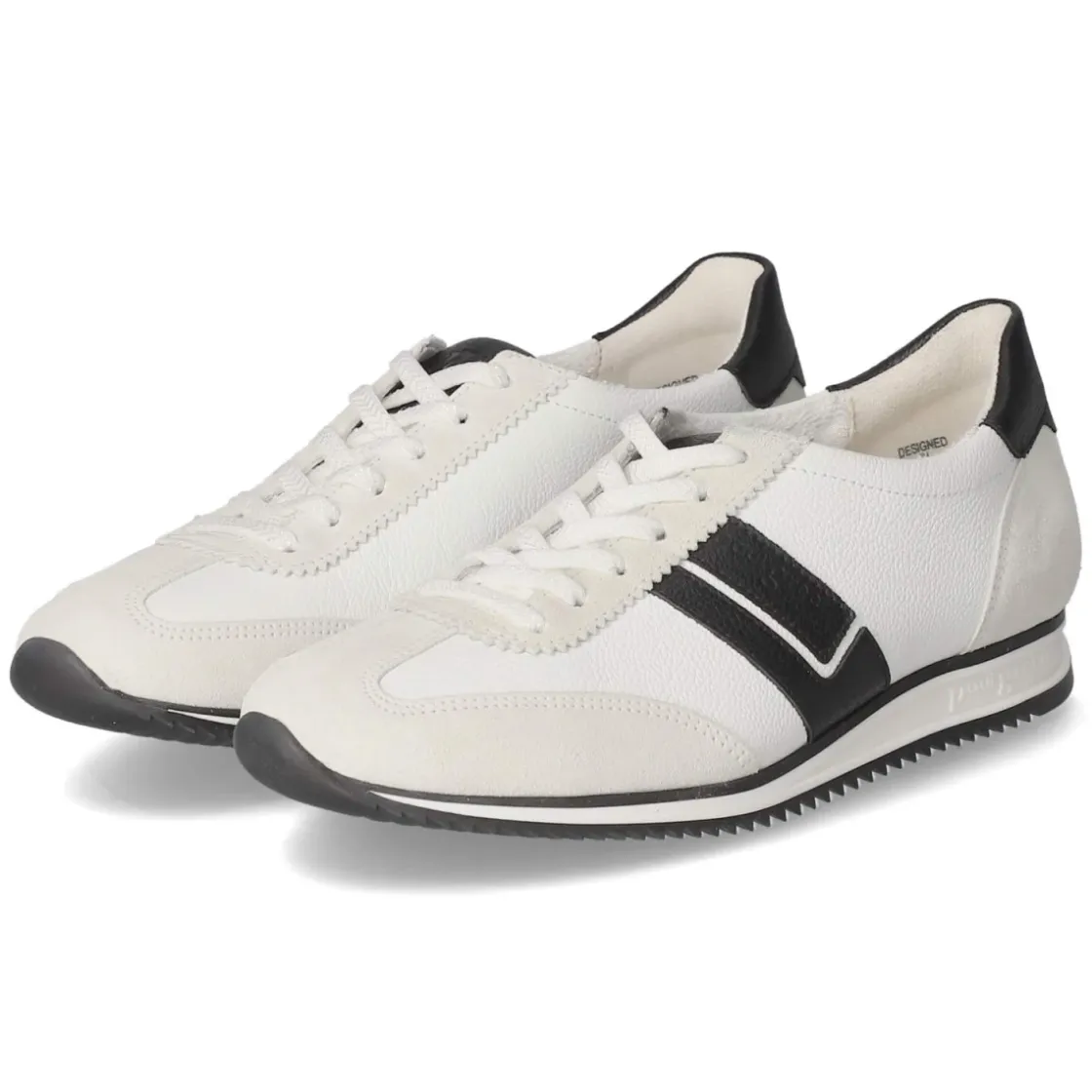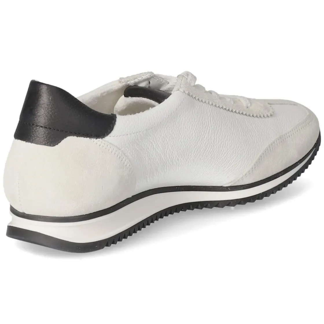 Der Low Sneaker von Paul Green vereint sportliche Leichtigkeit mit edlem Finish. Weißes Obermaterial aus Leder und Textil wird durch schwarze Akzente mit Markendetails akzentuiert und erhält so einen zeitlosen, urbanen Look. Atmungsaktives Echtleder und eine hautfreundliche Lederdecksohle sorgen zusammen mit einem gepolsterten, vorgeformten Lederfußbett für ein angenehm trockenes Fußklima und lang anhaltenden Komfort. Die runde Spitze, der verstärkte Zehen- und Fersenbereich sowie der gepolsterte Einstieg unterstützen eine stabile, bequeme Passform. Über die Schnürung lässt sich die Weite präzise regulieren, während die flexible, rutschhemmende Laufsohle zuverlässigen Grip im Alltag bietet. Der Sneaker fällt normal aus und passt zu vielfältigen Anlässen von Büro bis Freizeit. Modetipp: Besonders stimmig zu Cropped-Jeans und einem hellen Stricktop oder als cleaner Kontrast zu einem schwarzen Midirock.