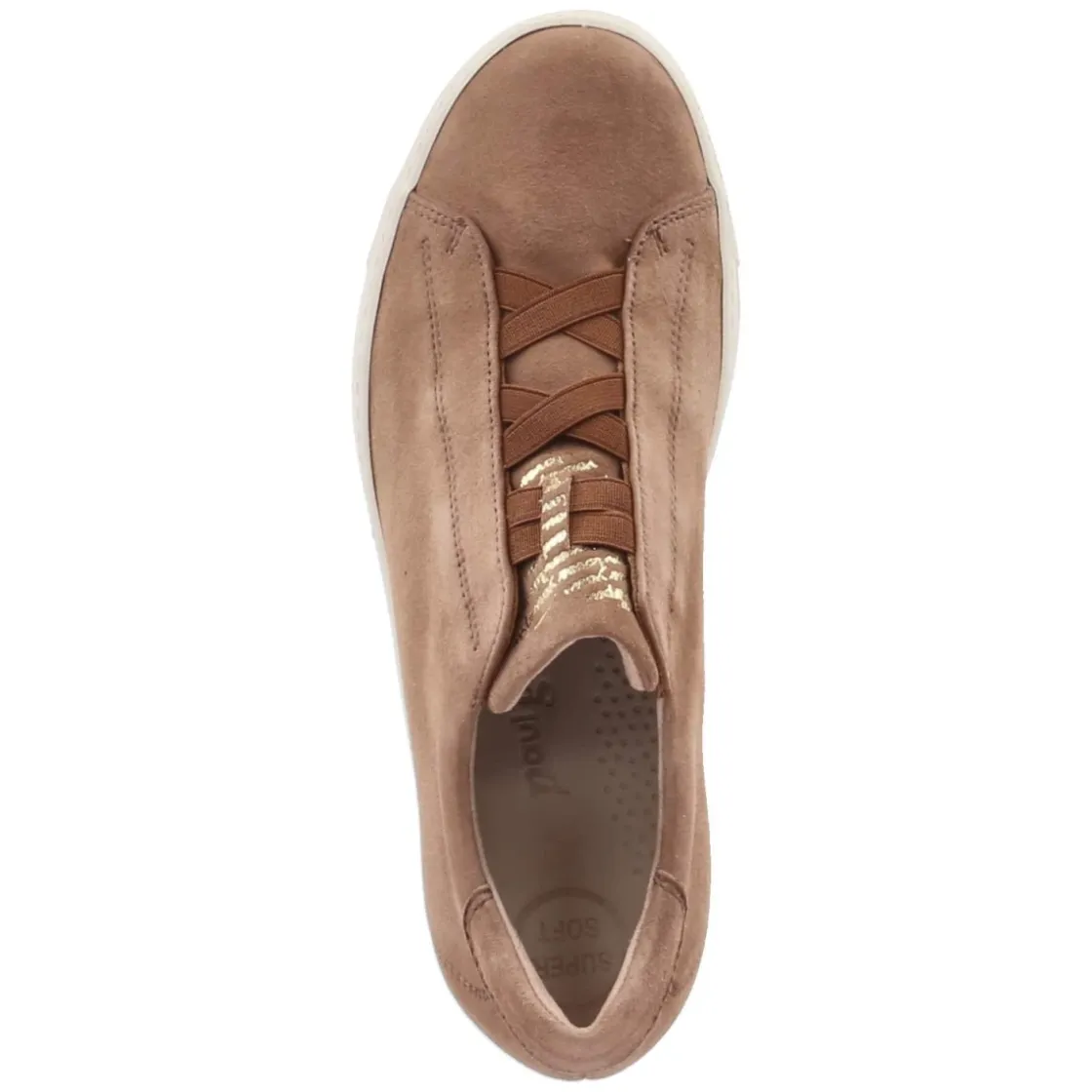 Der Sneaker von Paul Green vereint dezente Eleganz mit lässigem Komfort. Die samtige Rauleder-Oberfläche in Braun verleiht dem schlichten Design Tiefe und einen wertigen Griff. Dank elastischem Band in Schnüroptik gelingt das Hineinschlüpfen ohne Verschluss mühelos, während die runde Spitze und das 3 cm hohe Plateau für eine moderne Silhouette sorgen. Ein hautfreundliches Lederfutter und die lederne Decksohle umschmeicheln den Fuß angenehm, die rutschfeste Laufsohle liefert zuverlässigen Halt im Alltag. Eine Zunge mit leichtem Goldprint setzt einen feinen Akzent, der die hochwertige Verarbeitung unterstreicht. Vielseitige Kombinationsmöglichkeiten reichen von Casual bis Smart Casual und machen das Modell zum stilfesten Begleiter. Modetipp: Besonders harmonisch wirkt der Sneaker zu cropped Straight-Jeans, einem cremefarbenen Stricktop und filigranem Goldschmuck.
