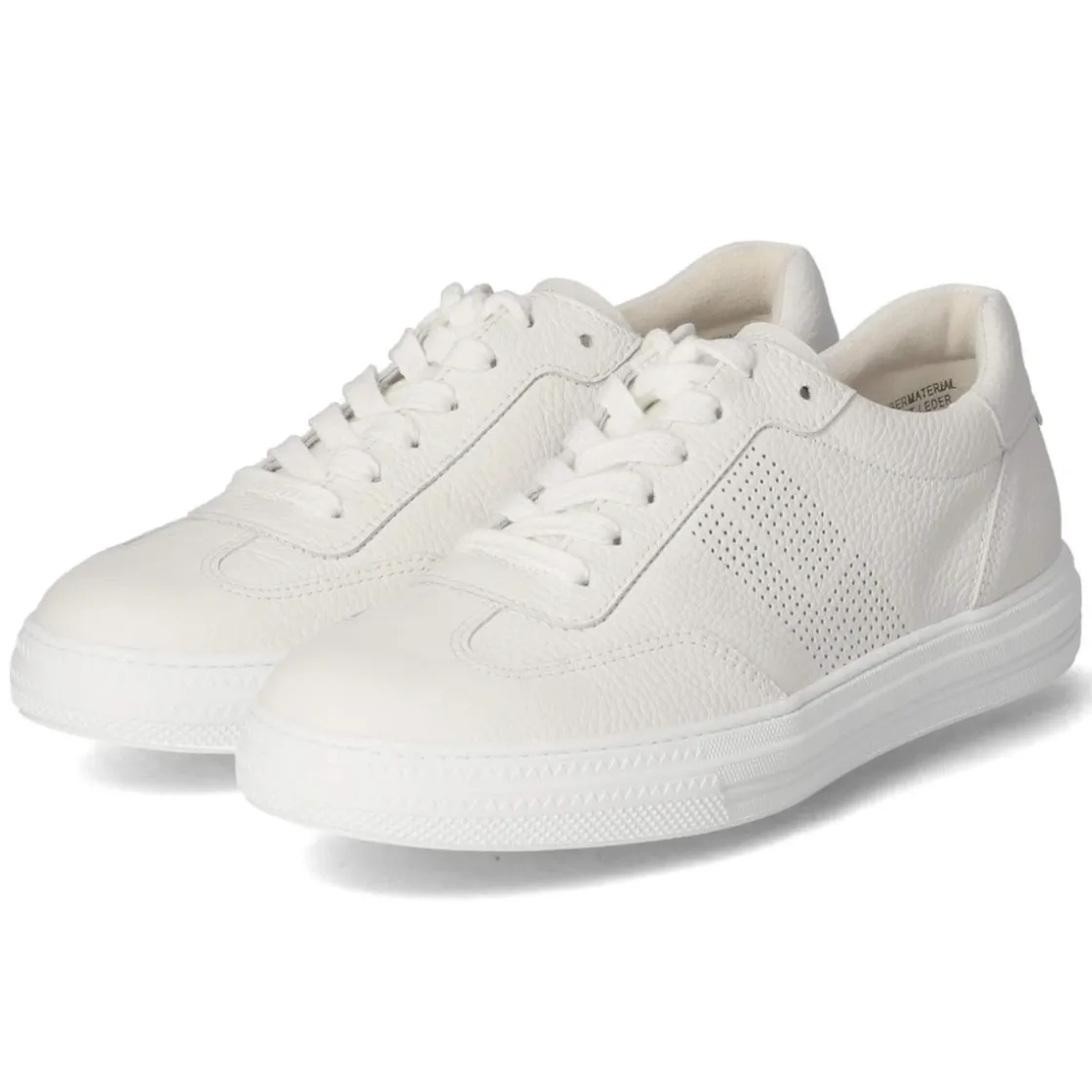 Der weiße Paul Green Sneaker für Damen verbindet puristische Ästhetik mit funktionalem Komfort. Atmungsaktives Echtleder mit seitlicher Lochung sorgt für ein ausgeglichenes Fußklima, während die runde Schuhspitze und der verstärkte Zehen- und Fersenbereich ein angenehmes, geschütztes Tragegefühl bieten. Die gepolsterte Wechseldecksohle und der weich gepolsterte Einstieg umspielen den Fuß, das komfortable Wechselfußbett lässt sich bei Bedarf austauschen oder gegen eigene Einlagen ersetzen. Über die Schnürung gelingt eine präzise Anpassung, die flexible, rutschhemmende Laufsohle unterstützt sicheren Halt auf urbanem Terrain. Markendetails setzen dezente Akzente, das Modell fällt größengetreu aus und punktet mit einer Lederdecksohle. Modetipp: Der cleane Weißton wirkt besonders frisch zu cropped Straight-Jeans und einem leichten Trenchcoat oder als Kontrast zum fließenden Midikleid.