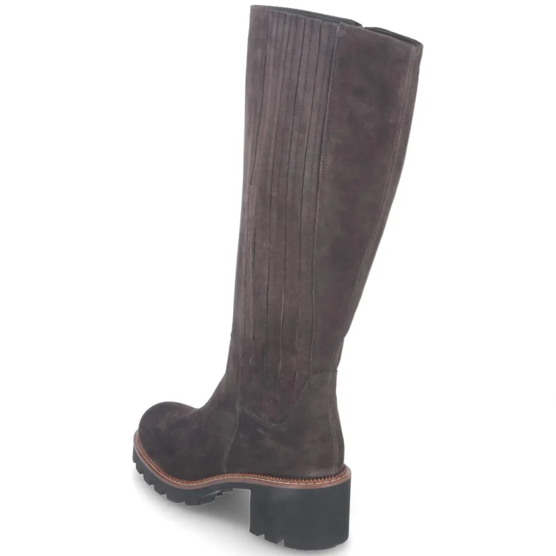 Der braune Damen-Stiefel von Paul Green verbindet zeitlose Eleganz mit verlässlichem Komfort. Weiches Rauleder in langlebiger Echtleder-Qualität umschmeichelt das Bein, der rund gearbeitete Leisten verleiht dem Look eine feminine Note. Dank 6 cm hohem Blockabsatz entsteht eine angenehme Höhe mit sicherem Stand, während die rutschhemmende Laufsohle bei jedem Schritt überzeugt. Ein seitlicher Reißverschluss erleichtert das Anziehen, ein Elastikeinsatz am Spann sorgt für flexible Passform. Mit einem Schaft von ca. 37 cm Höhe und etwa 36 cm Umfang schmiegt sich der Stiefel harmonisch an. Die lederne Decksohle unterstützt ein natürliches Fußklima, die Passform fällt normal aus. Modetipp: Zu Midikleid und Wollmantel entsteht ein urbaner Look; für den Alltag wirkt die braune Nuance besonders edel in Kombination mit Denim und Strick.