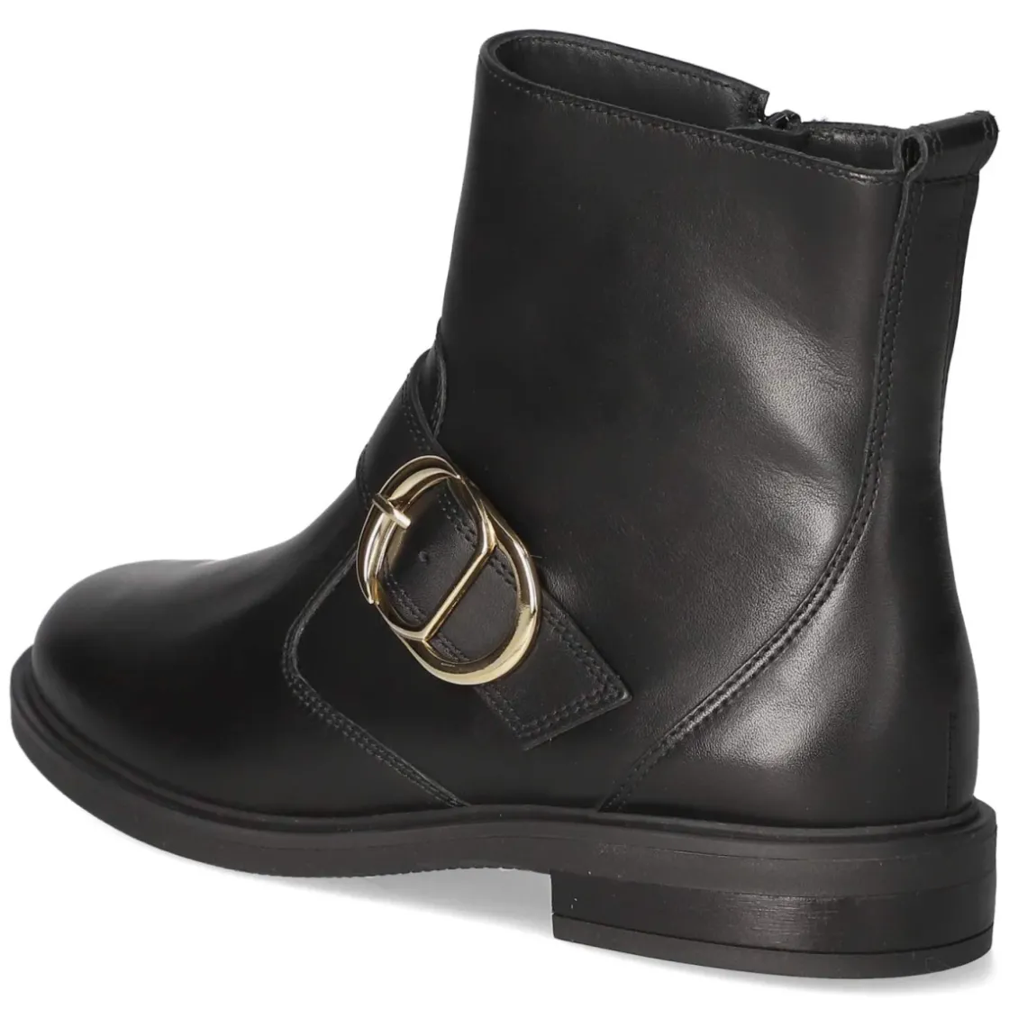 Die schwarzen Damen-Stiefeletten von Paul Green verbinden klare Linien mit hochwertiger Verarbeitung. Glattes, langlebiges Echtleder formt eine zeitlose Silhouette mit runder Spitze, während der bequeme Reißverschlußeinstieg und eine kleine Anziehhilfe schnelles Hineinschlüpfen ermöglichen. Ein gepolstertes Lederfußbett und die Lederdecksohle sorgen für angenehm gedämpften Auftritt, die flexible, griffige Laufsohle bietet Halt auf urbanen Wegen. Der 3 cm hohe Blockabsatz unterstützt natürliches Abrollen und macht die Stiefelette zum ausdauernden Alltagsbegleiter. Eine verstärkte Ferse fördert Stabilität, der feine Zierriemen mit goldener Zierschnalle setzt einen eleganten Akzent. Das Modell fällt normal aus und passt zu vielfältigen Looks – von Office bis Weekend. Modetipp: Mit gekürzten Straight-Jeans, Wollmantel und dezentem Goldschmuck harmoniert die Zierschnalle perfekt und verleiht dem Outfit klaren Modern Chic.