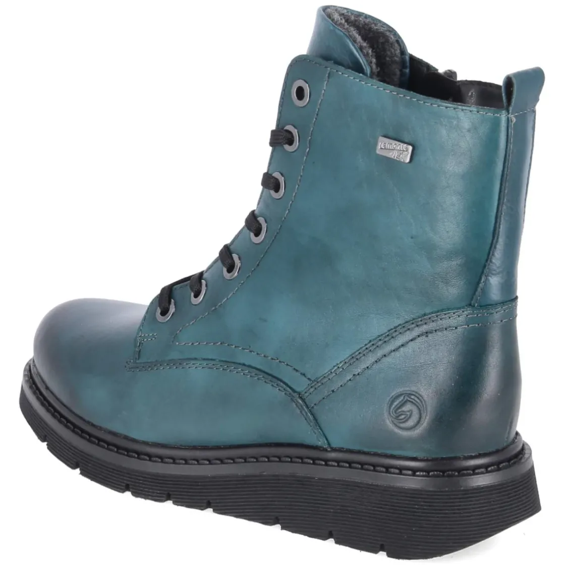 Die Winterstiefeletten von Remonte präsentieren sich in edlem Petrolblau und kombinieren wetterfeste Funktion mit modischem Auftritt. Das robuste Glattleder ist wasserabweisend, die Verarbeitung zugleich wasserfest, während die atmungsaktive Ausstattung für ein ausgeglichenes Fußklima sorgt. Warmfutter und eine weich gepolsterte textile Decksohle schenken behaglichen Komfort an kalten Tagen. Dank Schnürsenkeln und seitlichem Reißverschluss lässt sich die Passform präzise anpassen und der Einstieg mit Anziehlasche besonders leicht gestalten. Der rund gearbeitete Leisten bietet Zehenfreiheit, der verstärkte Fersenbereich Stabilität. Eine flexible, rutschfeste Laufsohle sorgt für sicheren Tritt auf winterlichen Wegen. Der Schnitt fällt normal aus und richtet sich an Damen, die verlässliche Begleiter im Alltag suchen. Modetipp: Zu Wollmantel und Strickkleid in Creme oder Grau wirkt das Petrolblau elegant; sportiver mit Skinny-Jeans und grobem Schal.