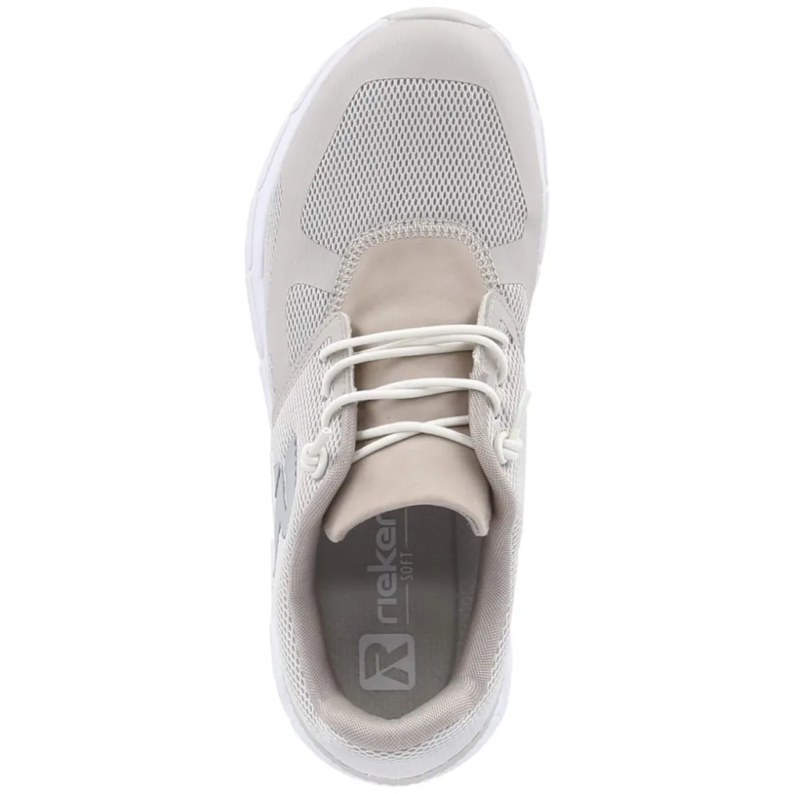 Der Rieker Low Sneaker in Beige verbindet lässige Optik mit durchdachtem Komfort. Der moderne Material-Mix aus Textil und Synthetik schmiegt sich angenehm an, die runde Schuhspitze bietet Zehenfreiheit. Ein gepolsterter Einstieg sowie der verstärkte Zehen- und Fersenbereich erhöhen Halt und Langlebigkeit. Das herausnehmbare, weich gepolsterte Wechselfußbett mit textilem Bezug sorgt für ein angenehm federndes Laufgefühl und eignet sich für individuelle Einlagen. Die flexible, rutschhemmende Laufsohle unterstützt sicheren Tritt im Alltag, während das seitliche Reflektor-Logo dezente Sichtbarkeit bringt. Dank klassischer Schnürung mit Elastikband-Optik sitzt der Schuh unkompliziert und fällt größengetreu aus. Modetipp: Ton-in-Ton mit sandfarbenen Chinos und einem leichten Stricktop kombinieren – dazu eine feine Schultertasche in Nude für einen harmonischen City-Look.