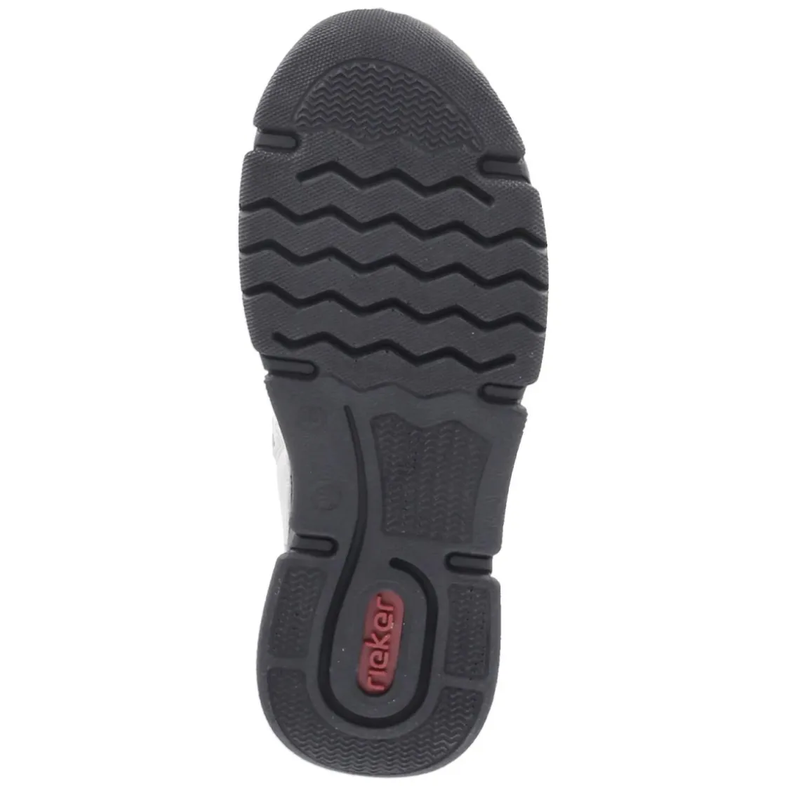Diese Rieker Schnürstiefeletten verbinden urbanes Flair mit funktionalem Komfort. Das weiße Obermaterial aus pflegeleichtem Synthetik setzt eine klare Note, während der seitliche schwarz-weiße Animal-Print im Giraffen-Look und der gepolsterte Einstieg mit roter Quersteppung markante Akzente liefern. Rundumlaufender Schnürverschluss in Kombination mit praktischem Reißverschluss erleichtert das An- und Ausziehen und sorgt für anpassbaren Halt. Ein weiches Fußbett und eine textile Decksohle umspielen den Fuß angenehm, das leichte Futter wärmt an kühlen Tagen ohne aufzutragen. Als relaxtes Leichtgewicht entlastet das Modell im Alltag, die flexible, rutschfeste Laufsohle bietet Grip auf wechselnden Untergründen. Der Schnitt fällt größengetreu aus und die runde Spitze gibt Zehenfreiheit. Modetipp: Zu Cropped-Denim und hellen Wollmänteln entsteht ein frischer Kontrast; ein rotes Accessoire greift die Steppung stilvoll auf.