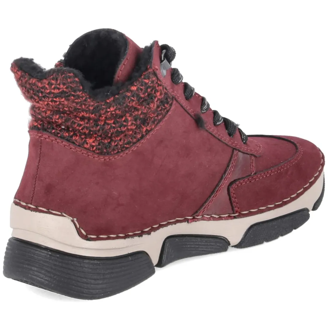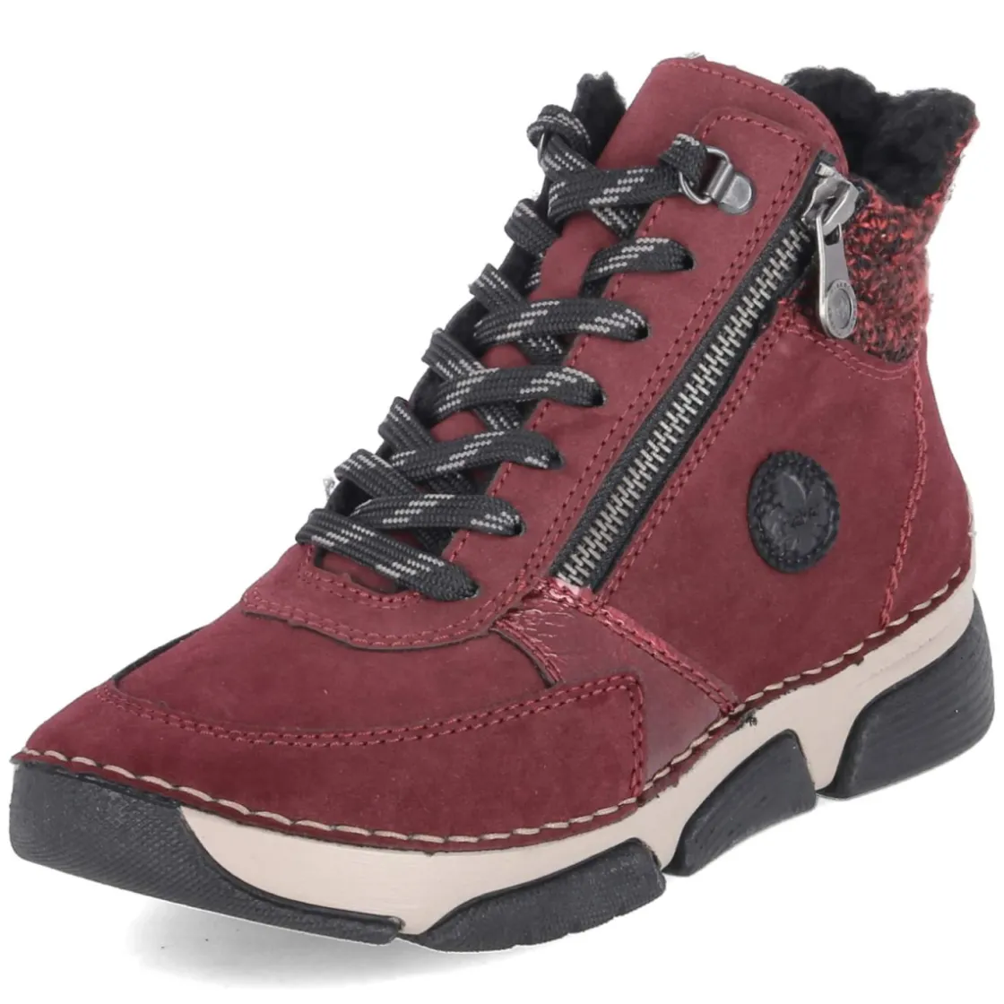 Dieser Damen-Schnürstiefel von Rieker setzt ein kraftvolles Statement in leuchtendem Rot und verbindet sportliche Optik mit wintertauglichem Komfort. Das Obermaterial aus Kunstleder zeigt sich besonders pflegeleicht, während Warmfutter mit kuscheligem Teddyfutter und gepolsterter Einstieg behagliche Wärme an kühlen Tagen bieten. Dank rutschhemmender Laufsohle ist auf nassem Asphalt und glatten Wegen verlässlicher Halt gegeben. Schnürsenkel erlauben die individuelle Anpassung, der seitliche Reißverschluss erleichtert das An- und Ausziehen. Die runde Schuhspitze schafft Zehenfreiheit, der verstärkte Zehen- und Fersenbereich erhöht die Robustheit im Alltag. Die Passform fällt normal aus und macht das Modell zum unkomplizierten Begleiter für Erwachsene. Modetipp: Das kräftige Rot entfaltet besondere Wirkung zu dunklen Skinny-Jeans, Oversize-Strick und einem klassisch schwarzen Wollmantel – für einen urbanen Look mit sportiver Note.