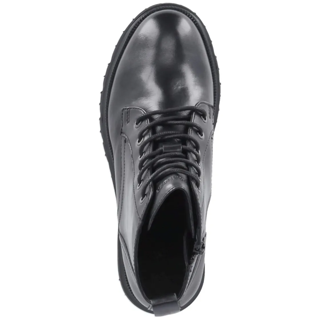 Die Salamander Schnürstiefeletten vereinen zeitlose Ästhetik und Komfort in einem schwarzen Glattleder-Finish. Das langlebige Echtleder, die runde Spitze und das klassische Design machen sie zu vielseitigen Begleitern für Alltag und Büro. Schnürsenkel sorgen für eine individuelle Anpassung, während der praktische Reißverschluss schnelles An- und Ausziehen ermöglicht. Ein gepolstertes, herausnehmbares Fußbett und die Decksohle aus Leder bieten ein angenehmes Tragegefühl. Die verstärkte Ferse gibt zusätzliche Stabilität, die Anziehlasche erleichtert den Einstieg und die flexible, rutschfeste Profilsohle gewährleistet sicheren Halt. Der Größenhinweis fällt normal aus. Modetipp: Zu einem strukturierten Wollmantel und einer Straight-Leg-Jeans entsteht ein cleaner City-Look; mit Midirock und blickdichter Strumpfhose wirken die Stiefeletten elegant und modern.