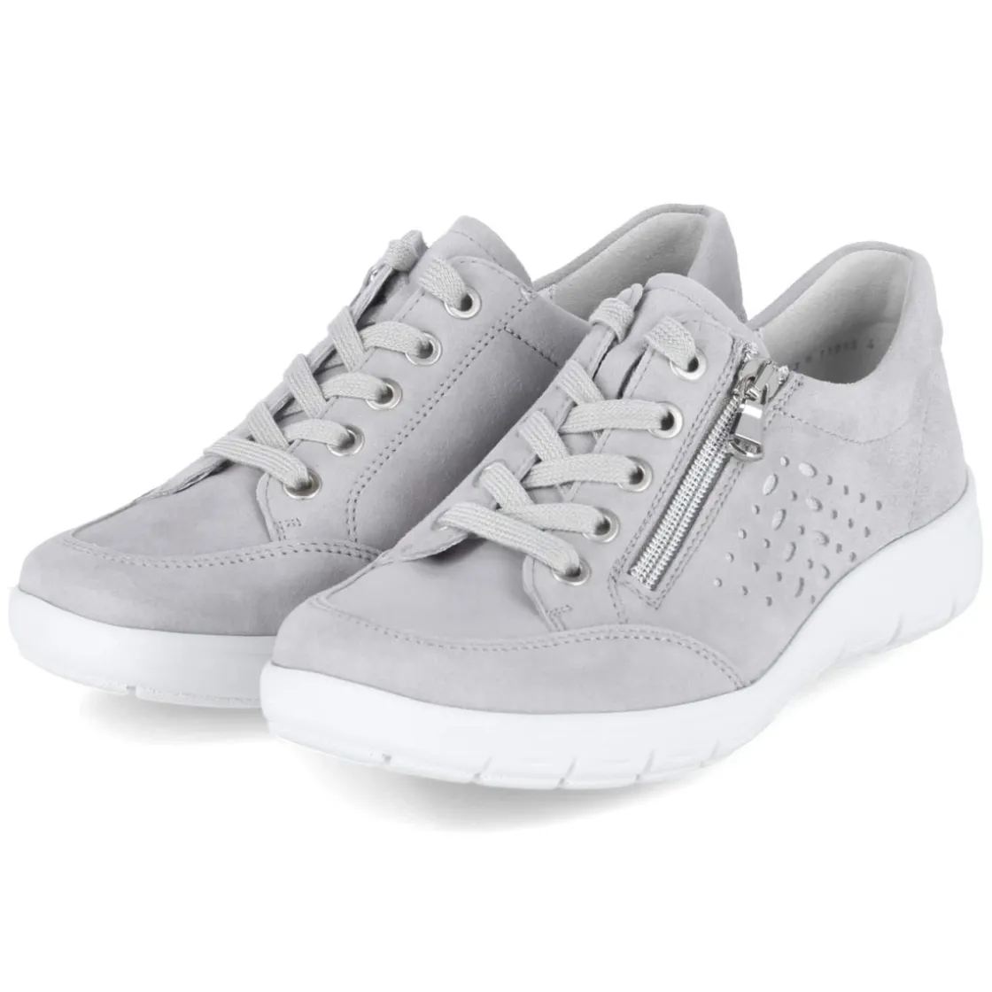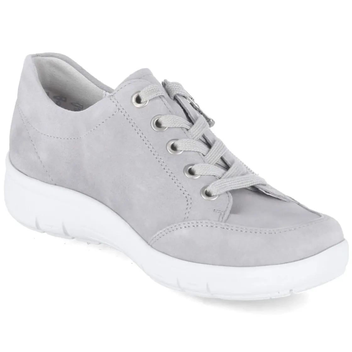 Dieser Damen-Halbschuh von Semler verbindet sportliche Leichtigkeit mit hochwertiger Verarbeitung. Weiches Rauleder in elegantem Grau umschmeichelt den Fuß, seitliche Lochungen bringen eine dezente Struktur und fördern ein angenehmes Klima. Die runde Spitze lässt Zehenfreiheit, während verstärkte Fersen- und Zehenpartien Formstabilität geben. Eine flexible Laufsohle mit griffigem Profil unterstützt sicheren Tritt im Alltag. Praktisch und komfortabel: die Kombination aus Schnürsenkeln und Reißverschluss erleichtert das An- und Ausziehen, die lederne Decksohle sorgt für ein natürliches Fußgefühl. Das komfortable, herausnehmbare Wechselfußbett erlaubt individuelle Einlagen, der Schnitt fällt normal aus. Modetipp: Ton-in-Ton mit einer grauen Culotte und hellem Feinstrick entsteht ein moderner City-Look, ein strukturierter Trench rundet das Ensemble elegant ab.