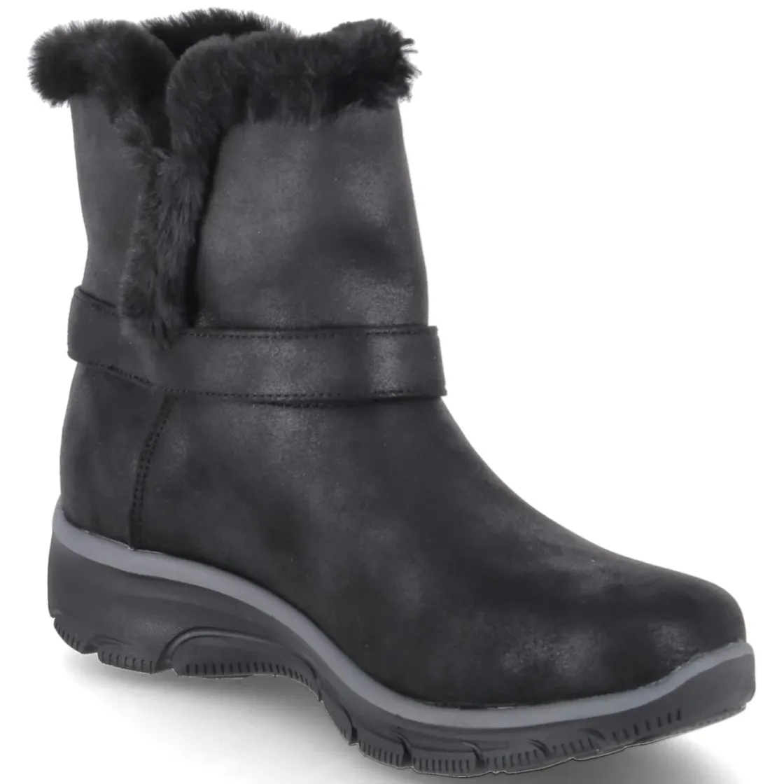 Der Skechers SLIP-INS DREAMERS MOVE vereint wintertauglichen Komfort mit urbaner Lässigkeit. Das wasserabweisende Textil-Obermaterial und das wärmende Futter halten angenehm trocken und warm, während die robuste, rutschhemmende Profilsohle sicheren Halt bietet. Der unkomplizierte Einstieg ohne Verschluss funktioniert dank Slip-Ins-Konstruktion besonders komfortabel; der weiche Kunstfellkragen schmiegt sich an und setzt einen gemütlichen Akzent. Für langanhaltenden Tragekomfort sorgt die hochwertige Memory-Foam-Fußbettung, die sich optimal anpasst. Schwarzes Design, runde Spitze und dezenter Riemen mit Metallring am Knöchelbereich geben dem Modell eine zeitlose Note. Aus veganen Materialien gefertigt und in der Passform regulär ausfallend, wird der Schuh zum vielseitigen Begleiter im Alltag. Modetipp: Besonders stimmig zu Steppmantel, Strickkleid und Thermo-Strumpfhose oder zu Wide-Leg-Jeans und Oversize-Parka.