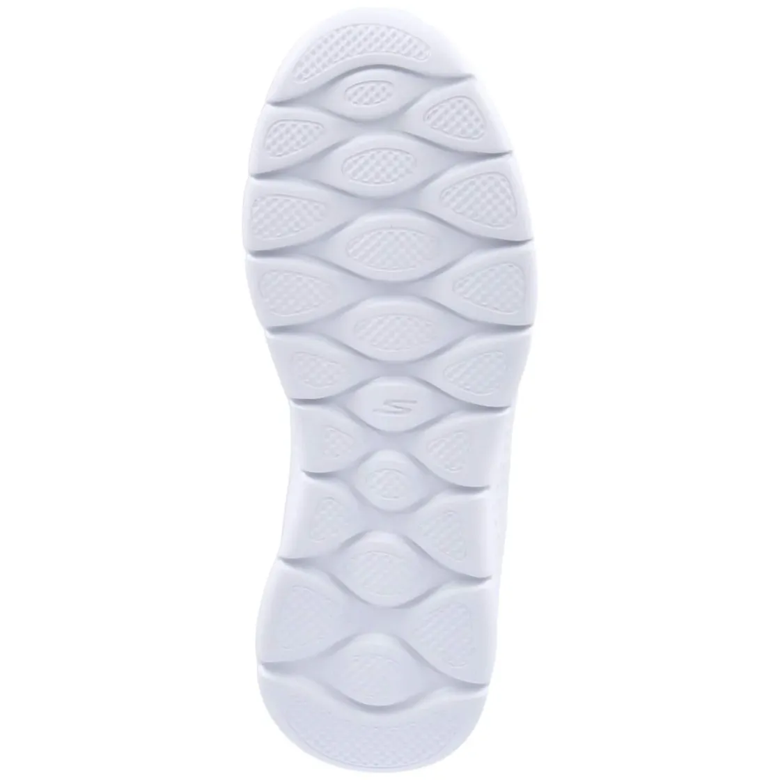 Der Slip-ins Sneaker GRAND ENTRY von Skechers verbindet mühelose Bequemlichkeit mit frischem Design. Die runde Silhouette und die Strick-Optik treffen auf eine atmungsaktive Meshoberfläche, die mit türkisen Highlights Akzente setzt. Dank Slip-in-Konstruktion ohne Verschluss gleitet der Fuß komfortabel hinein, während das elastische Band in Schnüroptik den sportlichen Look abrundet. Die GO WALK FLEX Laufsohle ist flexibel und rutschfest, das relaxtes Leichtgewicht entlastet bei jedem Schritt. Im Inneren sorgt die beste Memory-Foam-Fußbettung zusammen mit der textilen Decksohle für weiche Dämpfung. Waschmaschinen geeignet und in Weiß besonders vielseitig. Fällt normal aus mit rundem Leisten für erwachsene Damen. Modetipp: Zu locker geschnittener Cargo, weißem Tank und türkisem Accessoire wirkt der Clean-Look modern und lässig.
