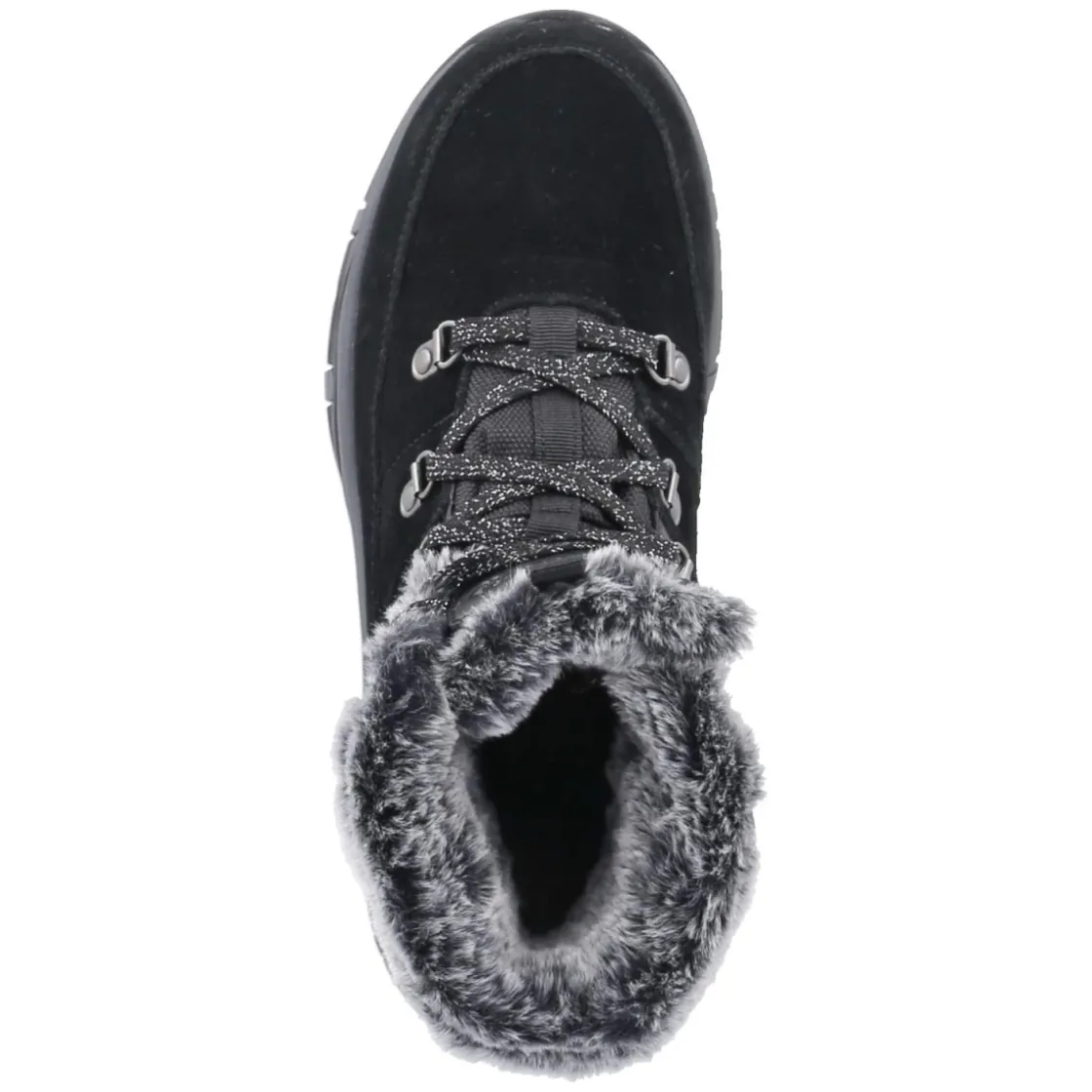 Die Winterstiefeletten SNOW WORRIE von Skechers vereinen funktionales Design und gemütlichen Tragekomfort für kalte Tage. Das Obermaterial aus Leder und Synthetik bietet robuste Stabilität, während die wasserfeste, wasserabweisende und atmungsaktive Ausführung zuverlässig vor Nässe schützt, ohne das Fußklima zu belasten. Warmfutter und eine weiche Textildecksohle sorgen für behagliche Wärme und ein angenehmes Trittgefühl. Der runde Leisten schafft Zehenfreiheit, die rutschhemmende Laufsohle vermittelt Sicherheit auf glatten Untergründen. Mit Schnürverschluss lässt sich der Schuh individuell anpassen, die Passform fällt normal aus. In klassischem Schwarz zeigt sich das Modell vielseitig kombinierbar – ob für Stadtbummel, Arbeitsweg oder Spaziergang im Schnee. Modetipp: Zu einem langen Wollmantel, Thermoleggings und grob gestrickten Socken entsteht ein lässig-eleganter Winterlook in Ton-in-Ton-Grau und Schwarz.