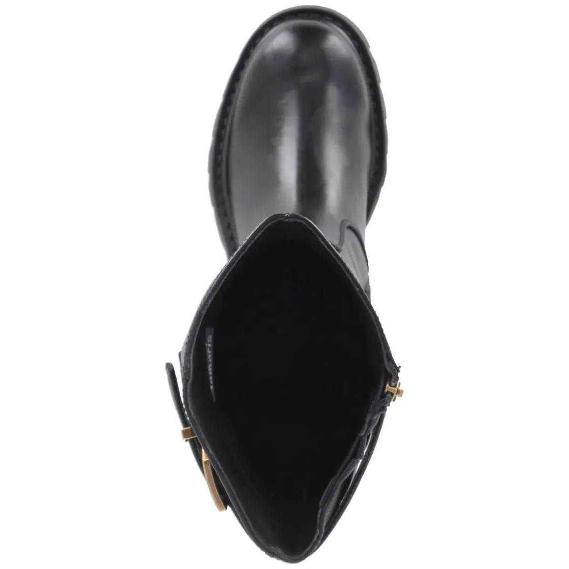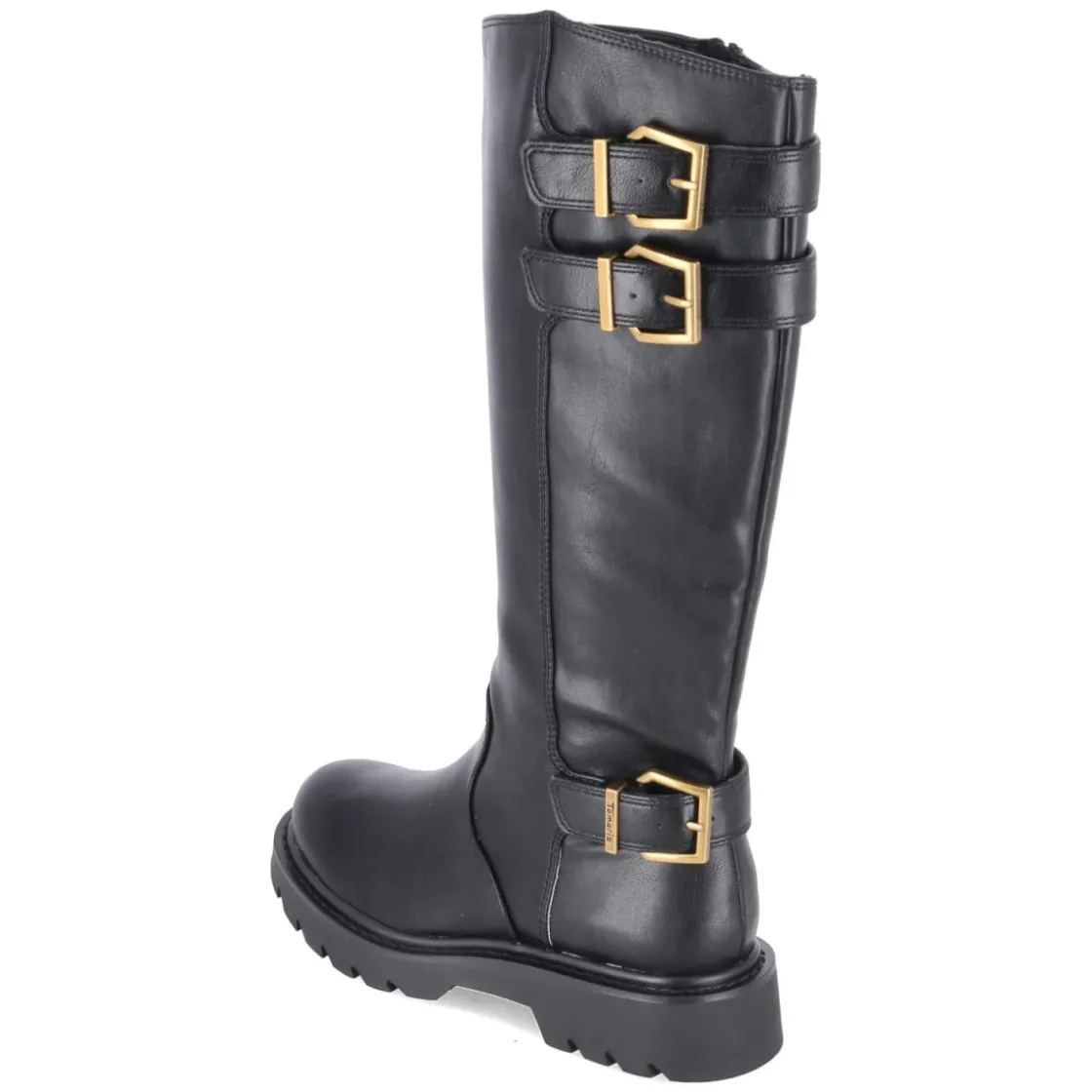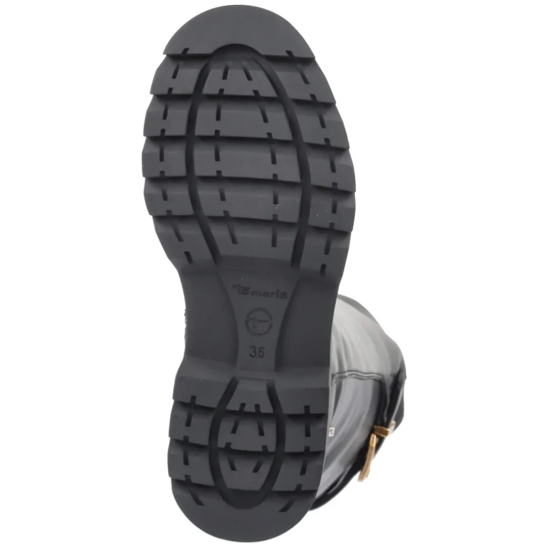 Der schwarze Bikerstiefel von Tamaris verbindet rockige Attitüde mit komfortabler Alltagstauglichkeit. Aus veganen Materialien gefertigt und mit einem Obermaterial aus hochwertigem Synthetik überzeugt das Modell durch klare Linien und eine runde Kappe. Der 3,5 cm hohe Blockabsatz sorgt für stabile Höhe, während das gepolsterte Fußbett und die textile Decksohle angenehme Dämpfung bieten. Ein leichtes Fleecefutter umschmeichelt die Füße an kühleren Tagen. Der praktische Reißverschlusseinstieg erleichtert das Anziehen; drei Riemen mit Schnallen am hinteren Schaft sowie ein kleiner Elastikeinsatz erhöhen die Anpassungsfähigkeit. Die rutschfeste Profilsohle bietet Trittsicherheit, eine verstärkte Ferse unterstützt den Halt. Mit Schafthöhe ca. 37 cm und Umfang ca. 36 cm wirkt der Stiefel präsent, bleibt aber alltagstauglich. Fällt normal aus. Modetipp: Zu Midikleid aus Strick und Blazer kontrastiert der Boot lässig-elegant.