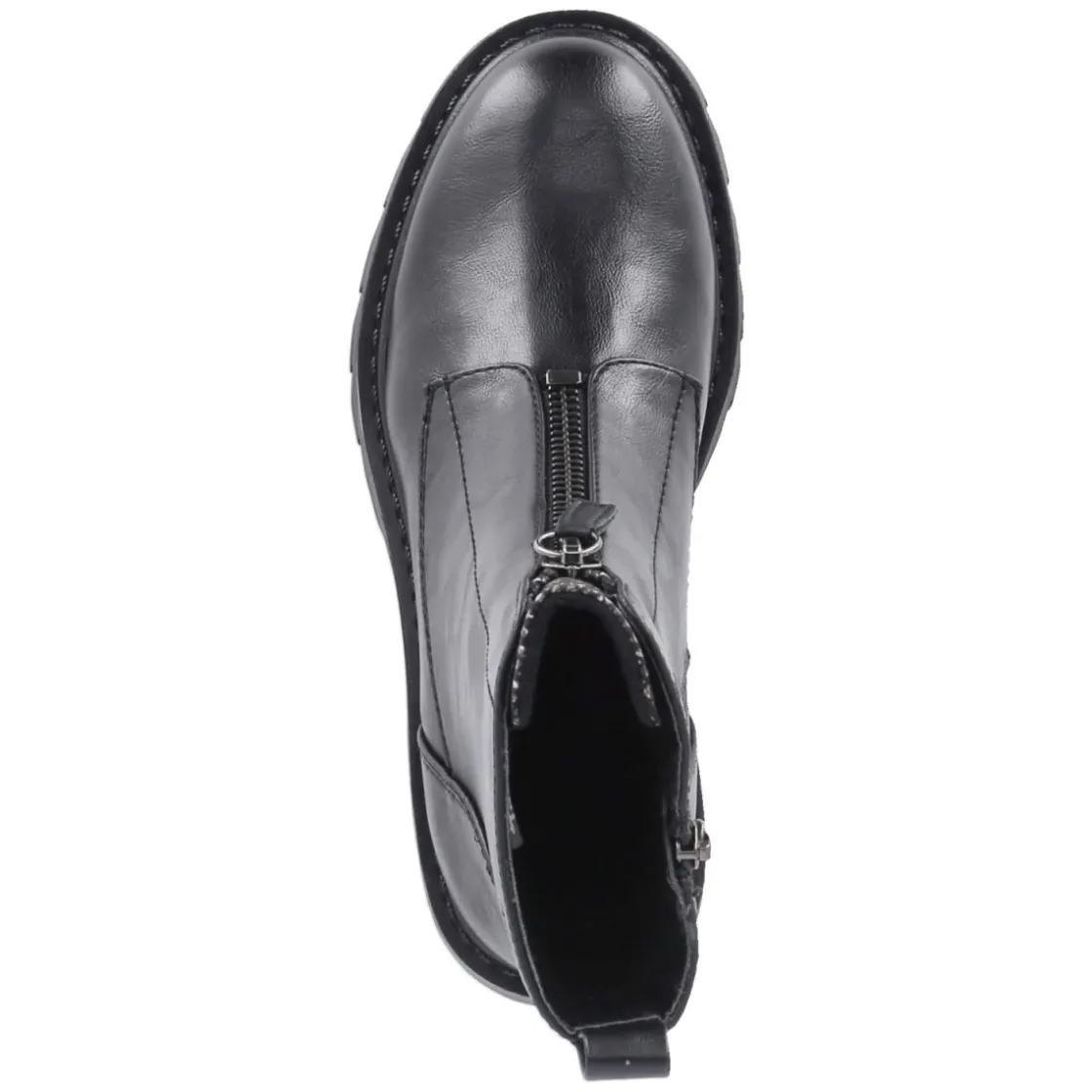 Der Tamaris Boot in Schwarz verbindet moderne Optik mit verlässlichem Tragekomfort. Das Obermaterial aus Synthetik wird bei diesem Damenmodell durch vegane Materialien ergänzt und präsentiert sich mit runder Schuhspitze und seitlichem Reißverschluss für bequemes An- und Ausziehen. Eine Front mit Zierreißverschluss und der dezente Schlangenprint auf der Zunge setzen stilvolle Akzente. Das gepolsterte Fußbett und die textile Decksohle sorgen für weiche Auftritte, während der verstärkte Fersenbereich Stabilität verleiht. Mit 4 cm Blockabsatz bleibt die Silhouette alltagstauglich, die flexible, rutschfeste Profilsohle unterstützt sicheren Halt auf verschiedenen Untergründen. Der Passformhinweis fällt normal aus und macht Entscheidungen leicht. Modetipp: In Kombination mit schwarzer Slim-Fit-Jeans und Oversize-Blazer entsteht ein urbaner Look, der vom Büro bis zum After-Work stimmig bleibt.