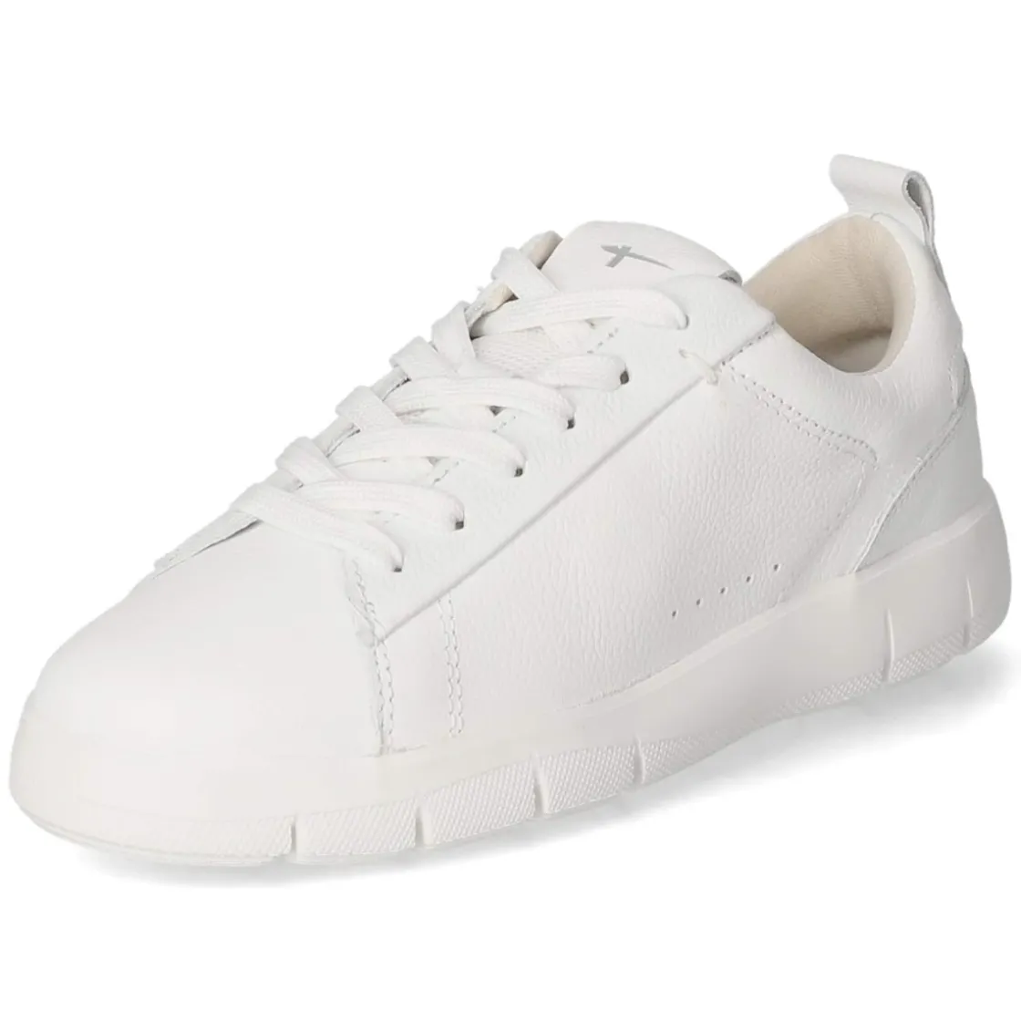 Der weiße Low Sneaker von Tamaris verbindet puristische Optik mit durchdachten Details. Glattes Obermaterial aus robustem Echtleder trifft auf eine runde Spitze und feine Ziernähte, die den klaren Look subtil betonen. Der bequem gepolsterte Einstieg und die verstärkte Ferse schenken Halt, während die flexible Laufsohle sanft abrollt. Die Schnürung ermöglicht eine individuelle Anpassung, die Anziehlasche erleichtert den Einstieg. Innen sorgt eine textile Decksohle für angenehmes Klima; das gepolsterte Wechselfußbett kann bei Bedarf gegen eigene Einlagen getauscht werden. Der Sneaker fällt normal aus und begleitet mühelos den Alltag von morgens bis abends. Modetipp: Zu hellen Straight-Leg-Jeans, einem weißen T-Shirt und einem beigefarbenen Trench entsteht ein zeitloses City-Outfit.