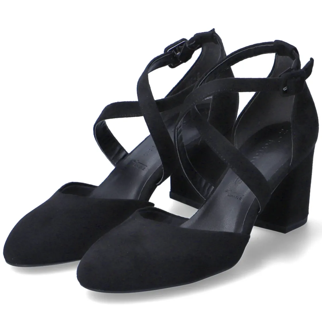 Zeitloser Chic trifft auf Komfort: Der schwarze Tamaris Pump zeigt sich mit samtiger Textiloberfläche und runder Schuhspitze als elegante Begleitung für Office und Event. Der 7 cm hohe Blockabsatz schenkt Höhe und bleibt dank breiter Auflage stabil, während die flexible, rutschhemmende Laufsohle souveränen Halt liefert. Ein Riemchen mit Schnalle und Elastikeinsatz sorgt für sicheren Sitz, ohne Druckstellen zu hinterlassen. Für langanhaltendes Wohlgefühl steht das weich gepolsterte Fußbett samt angenehm gepolsterter Decksohle. Das Modell fällt größengetreu aus und besteht aus veganen Materialien, ideal für einen bewussten Look ohne Kompromisse bei Stil und Tragekomfort. Modetipp: Zum kleinen Schwarzen oder zur Zigarettenhose mit seidigem Top kombinieren, dazu eine dezente Clutch und ein Hauch roter Lippenstift für einen souverän femininen Auftritt.