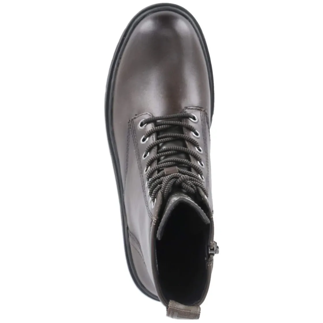 Diese Tamaris Damen-Schnürboots setzen auf einen robusten Material-Mix aus Leder und Synthetik und präsentieren sich in einem satten Grün, das je nach Licht einen warmen Braunton annehmen kann. Der schmale Schnitt umschmeichelt den Fuß, während die runde Spitze und die Schnürung für angenehmen Platz und verlässlichen Halt sorgen. Ein 3 cm hoher Blockabsatz stabilisiert jeden Schritt, die flexible, rutschfeste Profilsohle bietet Grip auf nassem Asphalt. Für spürbaren Komfort sorgt die textile Decksohle mit bester Memory-Foam-Fußbettung; das Wechselfußbett lässt sich bei Bedarf im Handumdrehen austauschen. Der verstärkte Fersenbereich und eine praktische Anziehlasche erleichtern das Handling. Trotz der robusten Bauart bleiben die Boots ein relaxtes Leichtgewicht – ideal für lange Tage in der Stadt. Modetipp: Zu cropped Straight-Jeans, grobem Strick und einem sandfarbenen Trench entsteht ein lässig-edler City-Look.