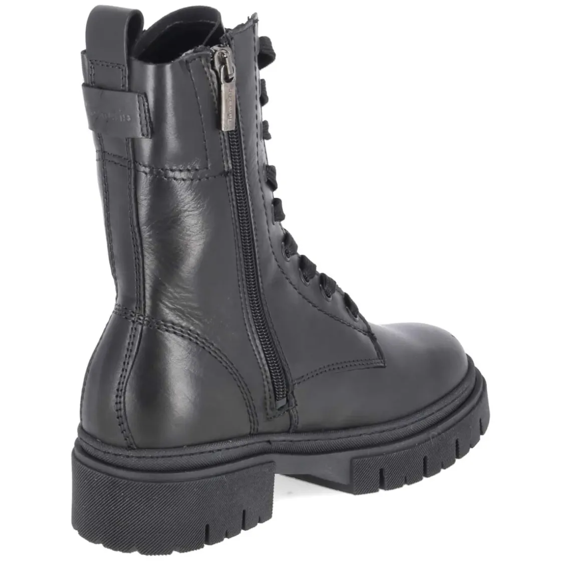 Diese Schnürboots von Tamaris verbinden urbanen Look mit zuverlässigem Komfort. Der robuste Material-Mix aus Leder und Synthetik erhält durch die schwarze Farbe ein zeitloses Finish, während der 4,5 cm hohe Blockabsatz Stabilität schenkt und die Silhouette dezent streckt. Schnürsenkel und seitlicher Reißverschluss erleichtern das An- und Ausziehen und sorgen zugleich für eine passgenaue Regulierung. Ein leichtes Futter wärmt an kühlen Tagen, die textile Decksohle unterstützt den Fuß angenehm. Mit runder Kappe, verstärktem Fersenbereich und flexibler, rutschfester Profilsohle gelingen entspannte Schritte auf wechselndem Untergrund. Der Größenhinweis fällt normal aus, wodurch die Wahl der üblichen Größe unkompliziert ist. Modetipp: Mit Cropped-Jeans, grobem Strickpullover und langem Wollmantel entsteht ein moderner City-Look mit klaren Linien.
