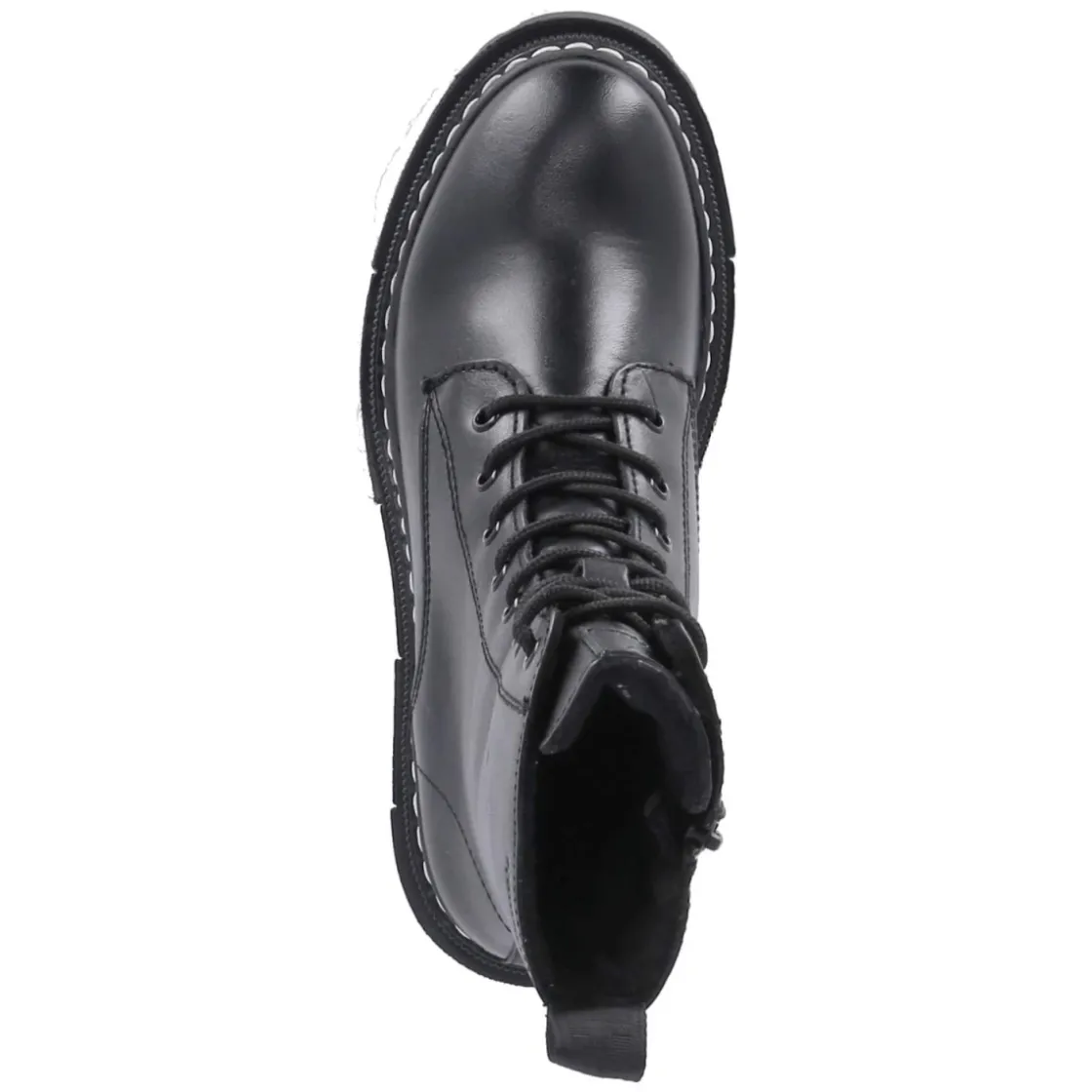 Diese Tamaris Schnürstiefeletten aus langlebigem Echtleder setzen auf zeitlose Schwarztöne und eine feminine, zugleich stabile Linienführung. Das weiche Warmfutter mit leichtem Griff verwöhnt an kühlen Tagen, während die textile Decksohle und das herausnehmbare Wechselfußbett für angenehme Dämpfung und individuelle Einlagenfreiheit sorgen. Ein 4,5 cm hoher Blockabsatz verleiht dezenten Lift und bleibt auch bei längeren Strecken komfortabel. Praktisch im Alltag: Schnürsenkel für die genaue Anpassung und ein zusätzlicher Reißverschluss für den schnellen Einstieg. Die runde Spitze schafft Zehenfreiheit, der Größenhinweis bestätigt ein normales Ausfallen. Modetipp: Zur Straight-Jeans in Dunkelblau und einem strukturierten Wollmantel getragen entsteht ein moderner City-Look mit klarer Silhouette.
