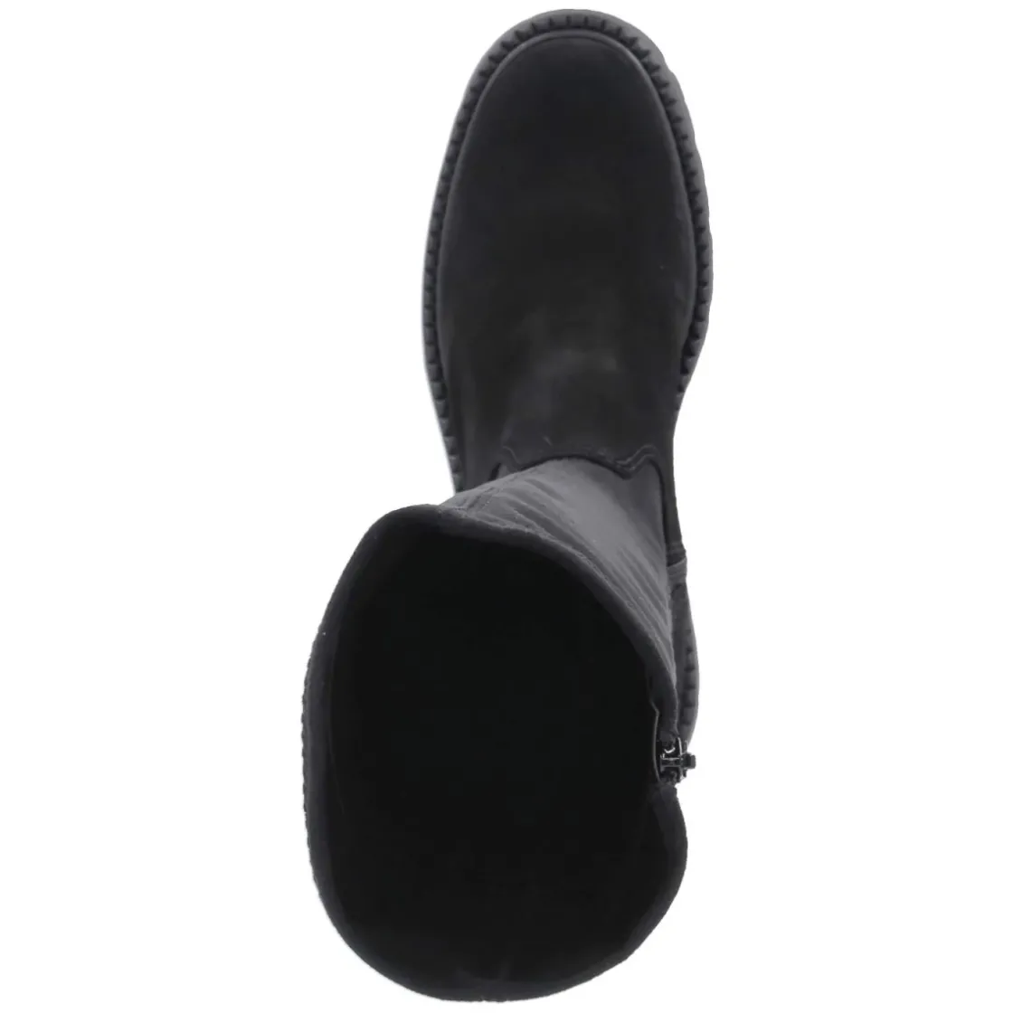 Der schwarze Stiefel von Tamaris verbindet zeitlosen Chic mit hohem Tragekomfort. Die samtige Oberfläche und das Obermaterial aus Leder und Textil sorgen für eine edle Anmutung, während der stretchige Schaft mit ca. 43 cm Höhe und ca. 32 cm Umfang eine schmeichelnde Passform bietet. Ein bequemer Reißverschluss erleichtert den Einstieg, das gepolsterte Fußbett und die Decksohle aus Textil & Synthetik begleiten entspannt durch den Tag. Der 4 cm hohe Blockabsatz und die rutschhemmende Profilsohle gewährleisten Stabilität, die runde Spitze setzt einen femininen Abschluss. Der Stiefel fällt größengetreu aus und eignet sich für vielfältige Anlässe von Office bis Freizeit. Modetipp: Mit Midikleid in Strick und langem Mantel entsteht ein harmonischer Look, der die schlanke Silhouette des Schafts elegant betont.