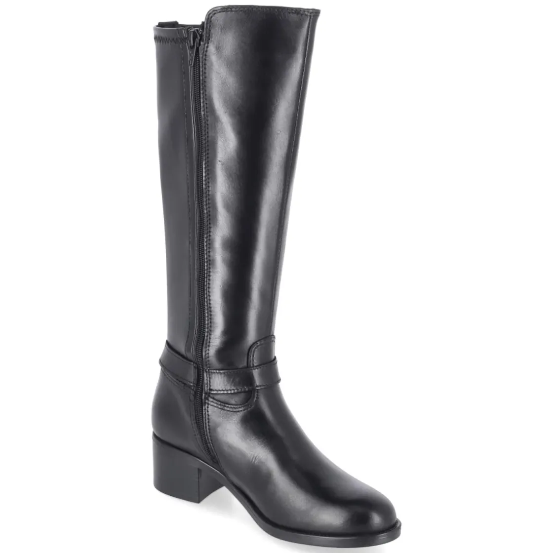 Der schwarze Stiefel von Tamaris vereint urbanen Chic mit funktionalen Details. Das Obermaterial aus Leder und Synthetik zeigt einen robusten Material-Mix, während der hintere Teil des Schafts aus stretchiger Synthetik angenehme Bewegungsfreiheit bietet. Ein zierender Knöchelriemen setzt einen dezenten Akzent, die runde Spitze und der 4,5 cm hohe Blockabsatz sorgen für zeitlosen Look und sicheren Stand. Die flexible, rutschfeste Laufsohle und das gepolsterte Fußbett erhöhen den Komfort im Alltag, die Decksohle aus Textil und Synthetik ergänzt das angenehme Tragegefühl. Mit Reißverschluss leicht anzuziehen, Schaftmaß ca. 33 cm x 34 cm (HxU). Fällt schmaler aus – eine Nummer größer bestellen. Modetipp: Besonders harmonisch zu Strickkleid und Oversize-Mantel oder als Kontrast zu lederähnlicher Leggings und klassischem Trenchcoat.