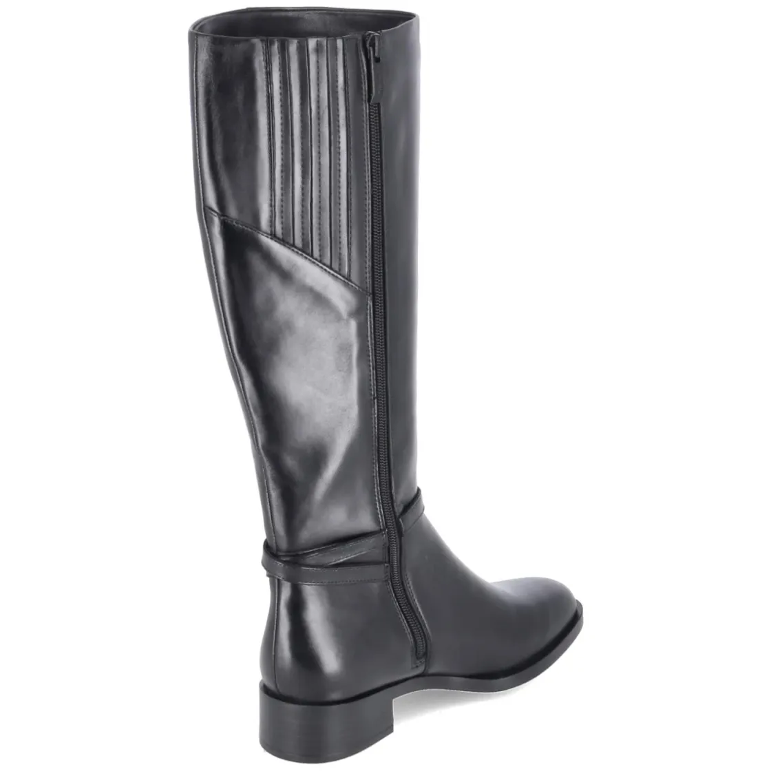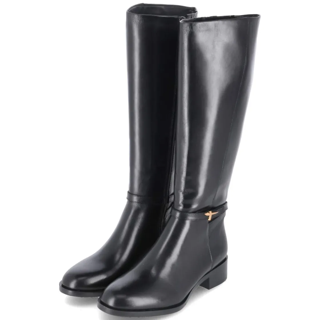 Dieser Damen-Stiefel von Tamaris vereint zeitlose Optik mit funktionalen Details. Schwarzes Glattleder in langlebiger Qualität trifft auf eine runde Spitze und einen 4 cm hohen Blockabsatz, der Stabilität und einen sicheren Auftritt bietet. Das gepolsterte Fußbett und die textile Decksohle sorgen für angenehmen Komfort, während die flexible, rutschfeste Laufsohle bei jedem Schritt unterstützt. Dank praktischem Reißverschluss gelingt das An- und Ausziehen mühelos; der Schaft misst ca. 38 cm in der Höhe und ca. 36 cm im Umfang. Ein Knöchelriemen mit goldenem Logo setzt einen edlen Akzent. Der Stiefel fällt normal aus und lässt sich vielseitig kombinieren – von Office bis Freizeit. Modetipp: Besonders stimmig zu Midikleid und langem Wollmantel, dazu eine strukturierte Ledertasche für einen ausgeglichenen Look.