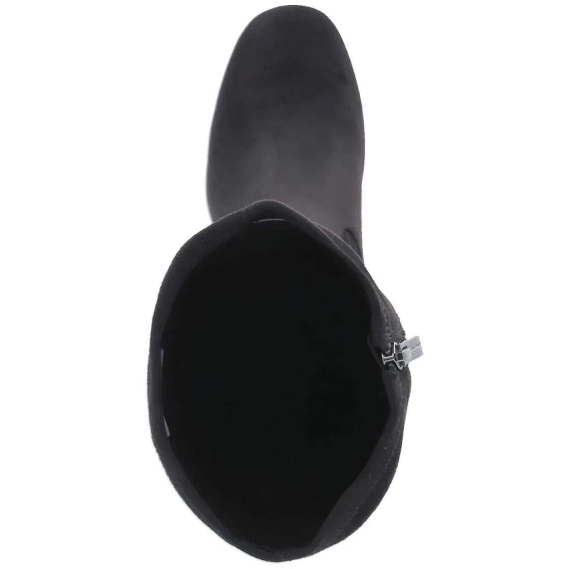 Der kniehohe Stiefel von Tamaris vereint klare Linien mit hohem Tragekomfort. Das schwarze Obermaterial aus Textil zeigt eine samtige Oberfläche, die dem cleanen Design Tiefe verleiht. Die runde Schuhspitze und das gepolsterte Fußbett sorgen für ein angenehmes Laufgefühl, während der 5,5 cm hohe Blockabsatz die Silhouette sanft streckt und sicheren Halt bietet. Ein bequemer Reißverschlußeinstieg und der leicht stretchige Schaft erleichtern das Anziehen und schmiegen sich dem Bein an; mit ca. 40 cm Höhe und 36 cm Umfang sitzt der Schaft ausgewogen. Die textile Decksohle, der verstärkte Fersenbereich und die flexible, rutschfeste Laufsohle begleiten zuverlässig durch den Tag. Der Sitz fällt größengetreu aus. Modetipp: Mit Midikleid, Wollmantel und blickdichter Strumpfhose entsteht ein moderner City-Look mit ruhiger Eleganz.