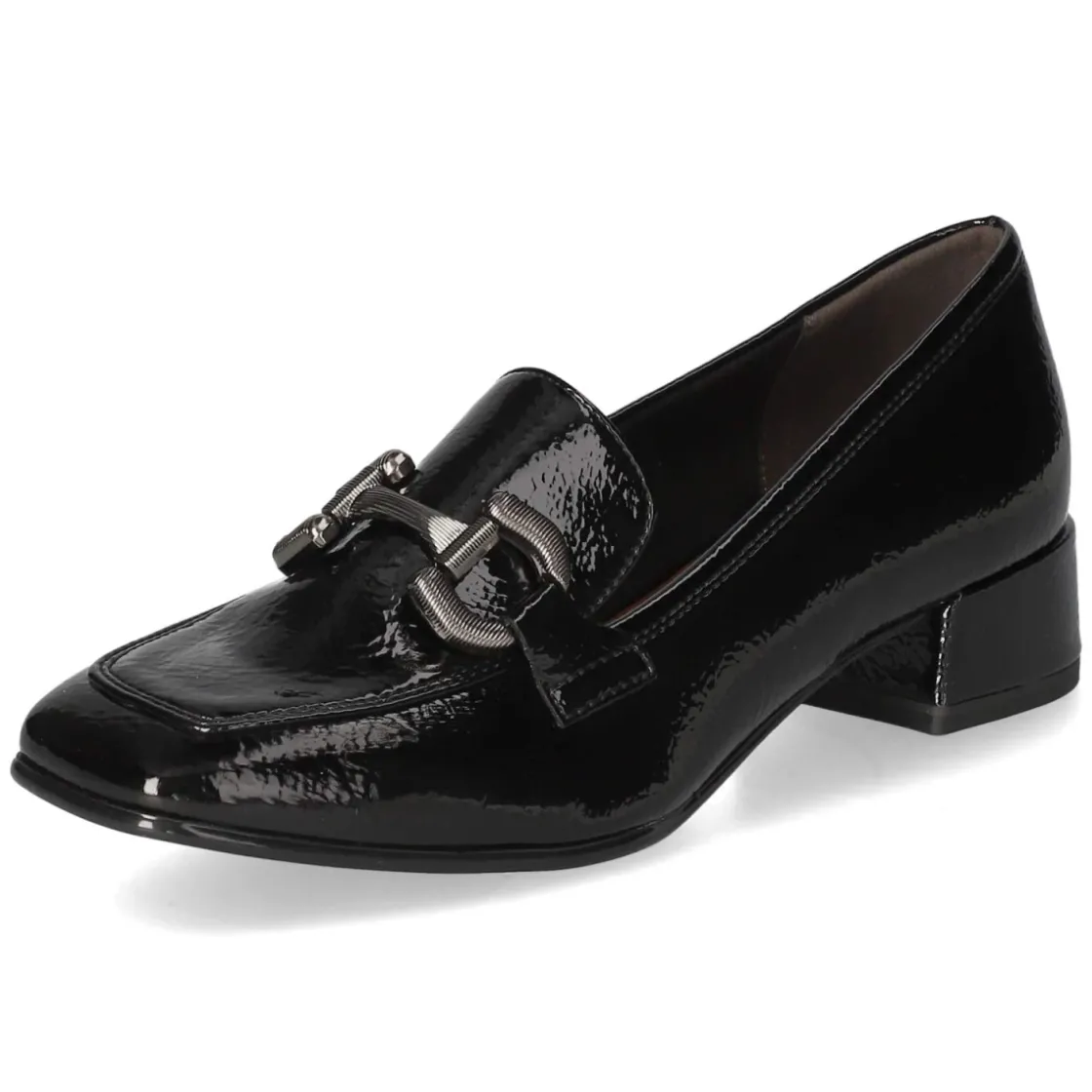 Dieser Trotteur von Tamaris verbindet zeitlose Eleganz mit hohem Tragekomfort. Die edle Lackoptik in klassischem Schwarz verleiht Outfits sofort eine gepflegte Note, während der 3,5 cm hohe Blockabsatz stabilen Halt und eine angenehme Höhe bietet. Dank rund gearbeiteter Schuhspitze und normaler Passform entstehen entspannte Proportionen, die den Fuß optisch schmal wirken lassen. Das pflegeleichte Obermaterial aus Synthetik und die ebenfalls synthetische, weich gepolsterte Decksohle sorgen für ein angenehmes Laufgefühl über viele Stunden. Ohne Verschluss gestaltet sich der Einstieg unkompliziert, ideal für den schnellen Griff am Morgen oder den Wechsel im Büro. Vielseitig kombinierbar von Business bis Abend. Modetipp: Zu einer verkürzten Zigarettenhose und einer seidigen Bluse tragen, dazu eine schmale Clutch – so entsteht ein souveräner, moderner City-Look.