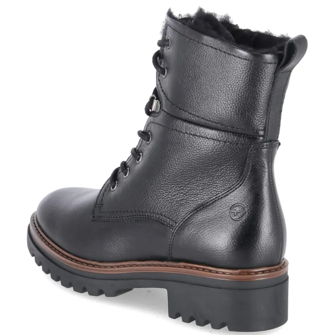 Die Winterschnürstiefeletten von Tamaris verbinden urbanen Look mit funktionalem Komfort. Schwarzes Glattleder in robuster Qualität und eine verstärkte Ferse sorgen für langlebige Formstabilität, während warmes Futter und eine textile Decksohle behagliche Wärme bieten. Der rund gestaltete Leisten gewährt Zehenfreiheit, das gepolsterte Fußbett entlastet bei langen Wegen. Dank Schnürsenkeln lässt sich die Passform präzise justieren, der seitliche Reißverschluss ermöglicht einen bequemen Einstieg. Ein 4,5 cm hoher Blockabsatz verleiht subtilen Lift und sicheren Stand; die flexible, rutschfeste Profilsohle greift zuverlässig auf winterlichen Untergründen. Mit Schafthöhe ca. 16 cm und Umfang ca. 24 cm überzeugt das Damenmodell als verlässlicher Alltagsbegleiter und fällt größengetreu aus. Modetipp: Zu Wollmantel, Strickkleid und blickdichter Strumpfhose entsteht ein eleganter Winterlook.