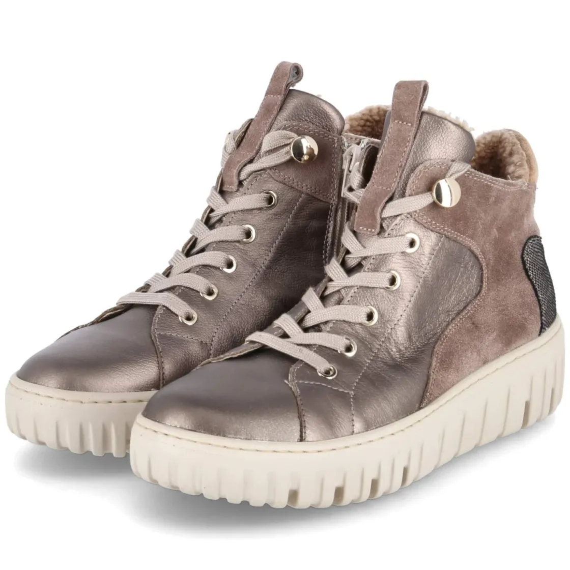 Die Winterstiefeletten H-LIVIA von Waldläufer verbinden wohltuende Wärme mit urbanem Glanz. Langlebiges Echtleder in edlem Bronze mit Metallic-Finish verleiht dem Look Tiefe, während das kuschelige Warmfutter an frostigen Tagen verlässlich schützt. Die runde Schuhspitze sorgt für angenehme Zehenfreiheit. Schnürsenkel erlauben eine individuelle Anpassung, der zusätzliche Reißverschluss erleichtert den Einstieg. Ein Wechselfußbett unterstützt personalisierten Komfort, auch für eigene Einlagen geeignet. Das Modell fällt größer aus und umschmeichelt den Fuß in einer bequemen Passform. Eine ausgewogene Kombination aus Stil und Funktionalität, die den Alltag souverän meistert. Modetipp: Zu Strickkleid und Wollmantel kommt der Bronze-Ton besonders schön zur Geltung; blickdichte Strumpfhose und ein Schal in Naturtönen runden den eleganten Winterlook ab.