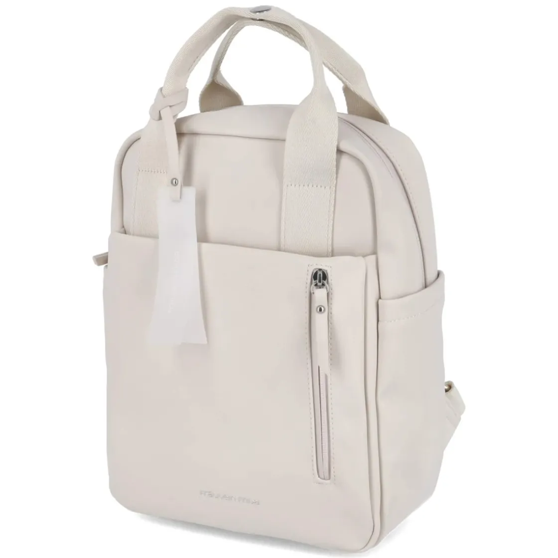 Zeitloser Damenrucksack in edlem Beige, kompakt mit ca. 31 x 23 x 13 cm und einem Volumen von ca. 9 Litern. Das Hauptfach schließt sicher mit Reißverschluss, während eine Fronttasche mit Magnet schnellen Zugriff auf Kleinigkeiten ermöglicht. Vorne und hinten ergänzen Reißverschlussfächer die Organisation, innen warten ein Steckfach, ein weiteres Reißverschlussfach sowie ein gepolstertes Rückenfach in Laptopgröße auf Technik und Wertsachen. Der verstärkte Boden hält die Form, verstellbare Tragegurte bis ca. 85 cm sorgen für komfortablen Sitz. Zwei kleine Seitentaschen bieten Platz für Flasche oder Schirm. Ein smarter Begleiter für Büro, Stadt und Reise. Modetipp: Zu Trenchcoat, Cropped-Jeans und weißen Sneakern entsteht ein moderner, reduzierter Look.