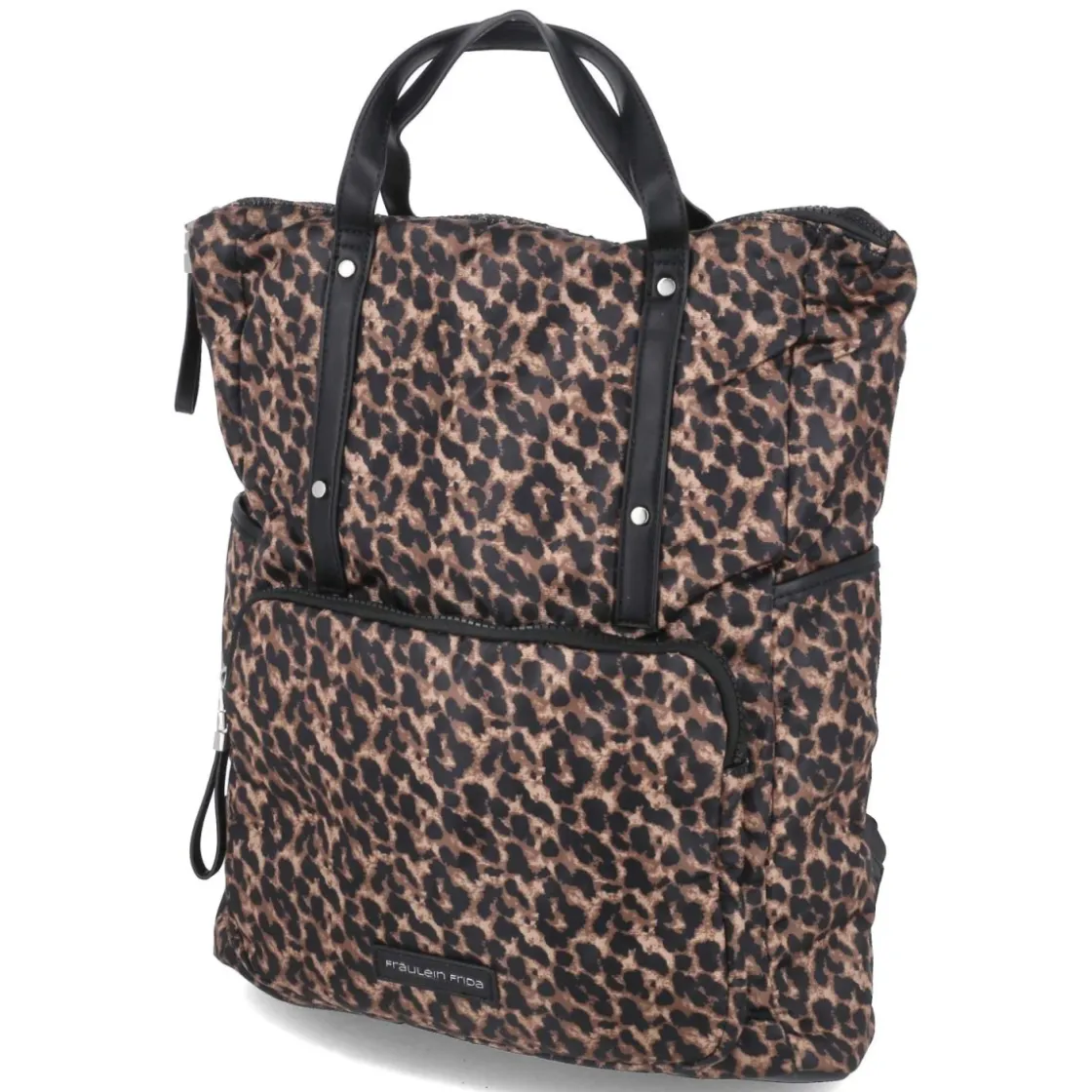 Mit ausdrucksstarkem Animal Print in warmem Braun setzt dieser Rucksack ein modisches Statement und bleibt zugleich alltagstauglich. Das Format von ca. 40 x 33 x 10 cm und ein Volumen von etwa 13 Litern bieten genügend Platz für Essentials. Ein Reißverschlusshauptfach schützt den Inhalt, während außen ein Rückenfach, zwei Seitentaschen und eine aufgesetzte Fronttasche schnelle Ordnung schaffen. Innen sorgen ein Steckfach, ein RV-Fach sowie ein gepolstertes Frontfach in Laptopgröße für Struktur. Zwei Henkel und verstellbare Tragegurte ermöglichen flexible Trageoptionen, der verstärkte Boden gibt Stabilität. Ideal für City, Büro oder Kurztrip. Modetipp: Der markante Print wirkt besonders edel zu monochromen Looks in Schwarz, Creme oder Camel; feine Gold-Details und weiße Sneaker runden den Auftritt modern ab.