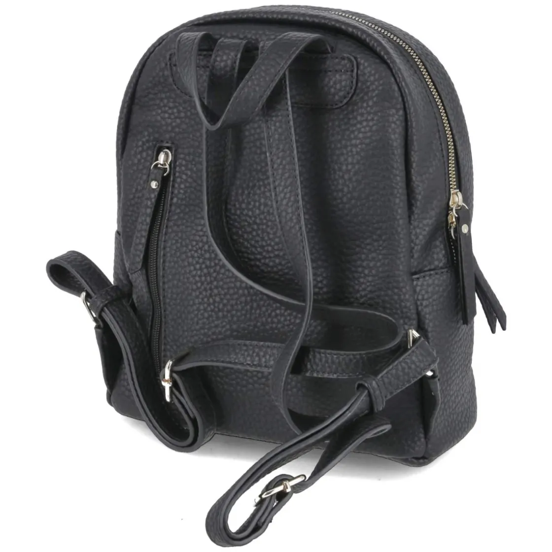 Der schwarze Damen-Rucksack vereint klare Linien mit funktionalen Details. Dunkelbraune Akzente und Metallelemente in goldener Optik setzen elegante Kontraste, während der verstärkte Boden Form und Standfestigkeit gibt. Mit ca. 30 x 24 x 11 cm und rund 7 Litern Volumen bietet das Modell genügend Platz für Alltag und Citytrip. Zwei Fronttaschen und ein Rückenfach halten Wichtiges griffnah, das Reißverschlusshauptfach schützt den Inhalt zuverlässig. Innen sorgen ein Steckfach und ein Reißverschlussfach für Übersicht. Verstellbare Tragegurte bis ca. 80 cm und ein handlicher Henkel ermöglichen flexibles Tragen vom Weg ins Büro bis zum Wochenendbummel. Modetipp: Für einen modernen City-Look mit Oversize-Blazer, weißem T-Shirt und Straight Jeans kombinieren; goldener Schmuck greift die Beschläge auf und rundet das Ensemble harmonisch ab.