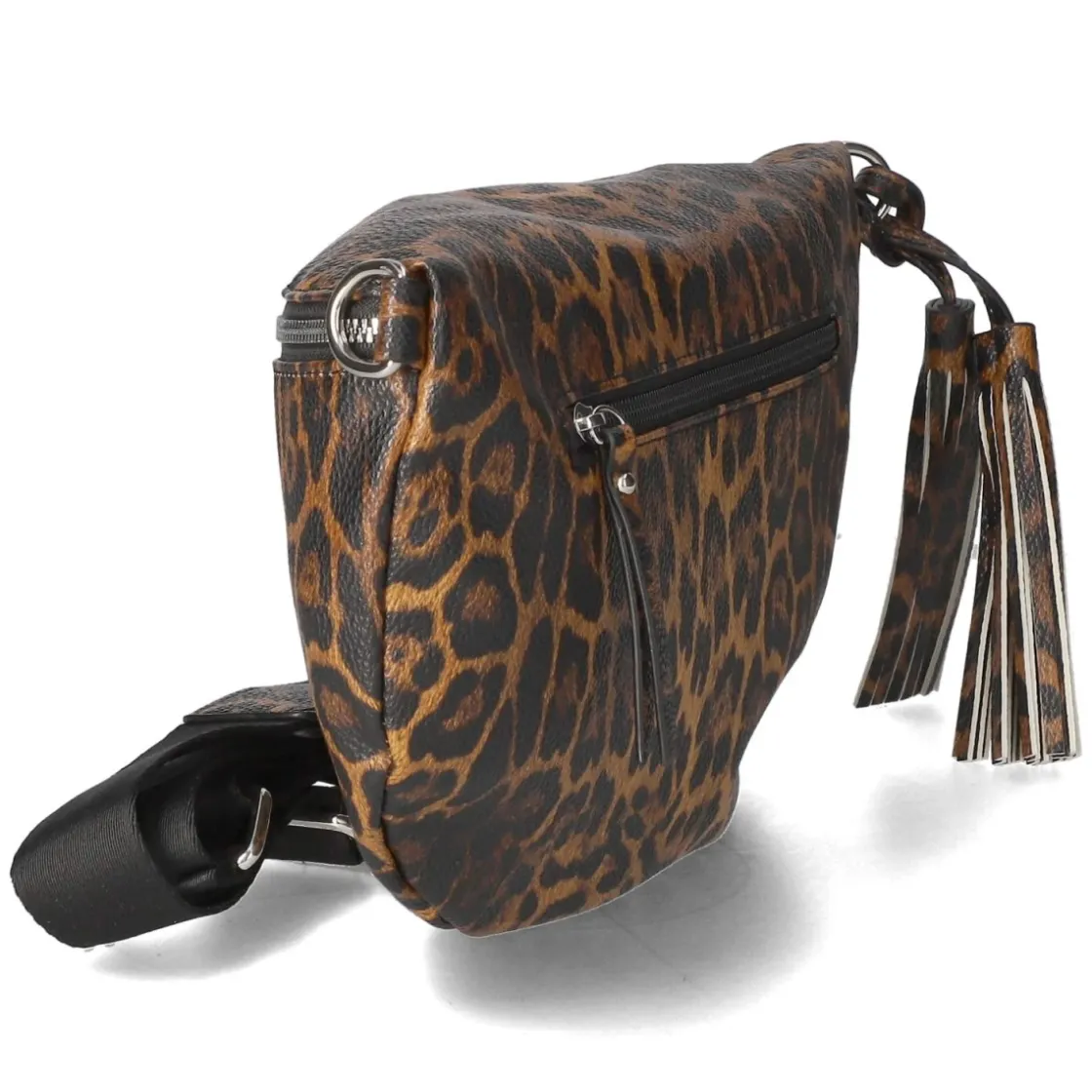 Diese Umhängetasche für Damen setzt mit braunem Animal Print und charakteristischem Leopardmuster ein ausdrucksstarkes Statement. Kompakt in der Silhouette, aber überraschend geräumig, fasst sie ca. 5 Liter und misst ca. 17 x 33 x 9 cm. Ein Reißverschluss sichert das Hauptfach, innen sorgen ein zusätzliches Reißverschlussfach und ein Steckfach für Ordnung, während außen ein rückseitiges Reißverschlussfach schnellen Zugriff ermöglicht. Der abnehmbare, verstellbare Schulterriemen (ca. 130 cm) erlaubt variablen Tragekomfort von Crossbody bis Schulter. Ein silberfarbenes Markenlogo und der schwingende Fransenanhänger setzen edle Akzente. Modetipp: Den wilden Print mit cleanen Basics wie schwarzer Denim und weißer Bluse stylen, dazu chunky Boots – so wirkt das Muster modern und bekommt die Bühne, die es verdient.