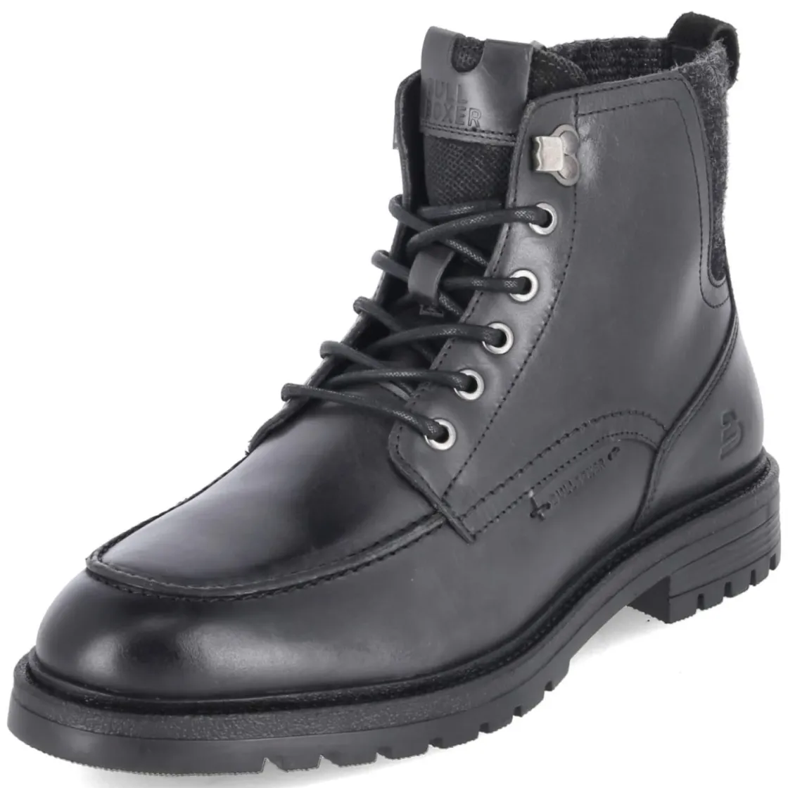 Der Herren-Boot von Bullboxer kombiniert klassisches Design mit robuster Alltagstauglichkeit. Schwarzes Glattleder aus langlebigem Echtleder und die markante Wulstnaht auf dem Schuhdeck setzen dezente Akzente, während die runde Spitze genügend Zehenfreiheit bietet. Ein 3 cm hoher Blockabsatz und die rutschhemmende Profilsohle sorgen für sicheren Auftritt auf nassem Pflaster. Innen überzeugt eine textile Decksohle sowie das komfortable Wechselfußbett, das bei Bedarf gegen eigene Einlagen getauscht werden kann. Schnürsenkel geben präzisen Halt, der zusätzliche Reißverschluss und die Anziehlasche erleichtern den schnellen Einstieg; ein elastischer Einsatz stabilisiert den verstärkten Fersenbereich. Der Schnitt fällt normal aus und macht den Boot zum unkomplizierten Begleiter für Büro und Freizeit. Modetipp: Mit dunklem Denim, Feinstrickpullover und einem Mantel in Karamell entsteht ein zeitloser, urbaner Look.